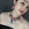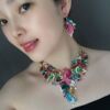跨境爆款欧美首饰夸张画油水晶钻项链耳环套装礼服新娘宴会女配饰