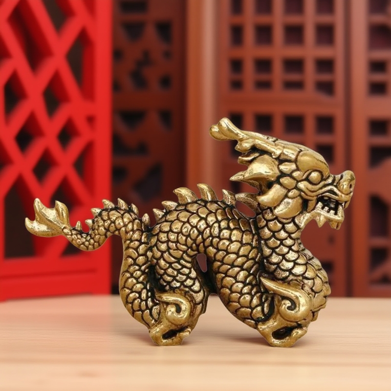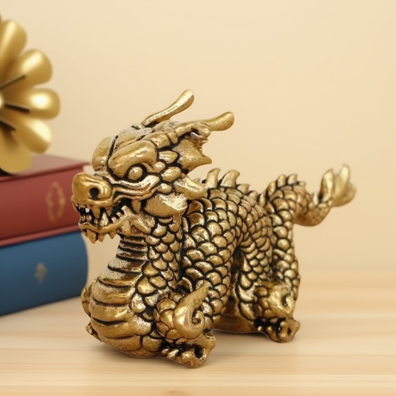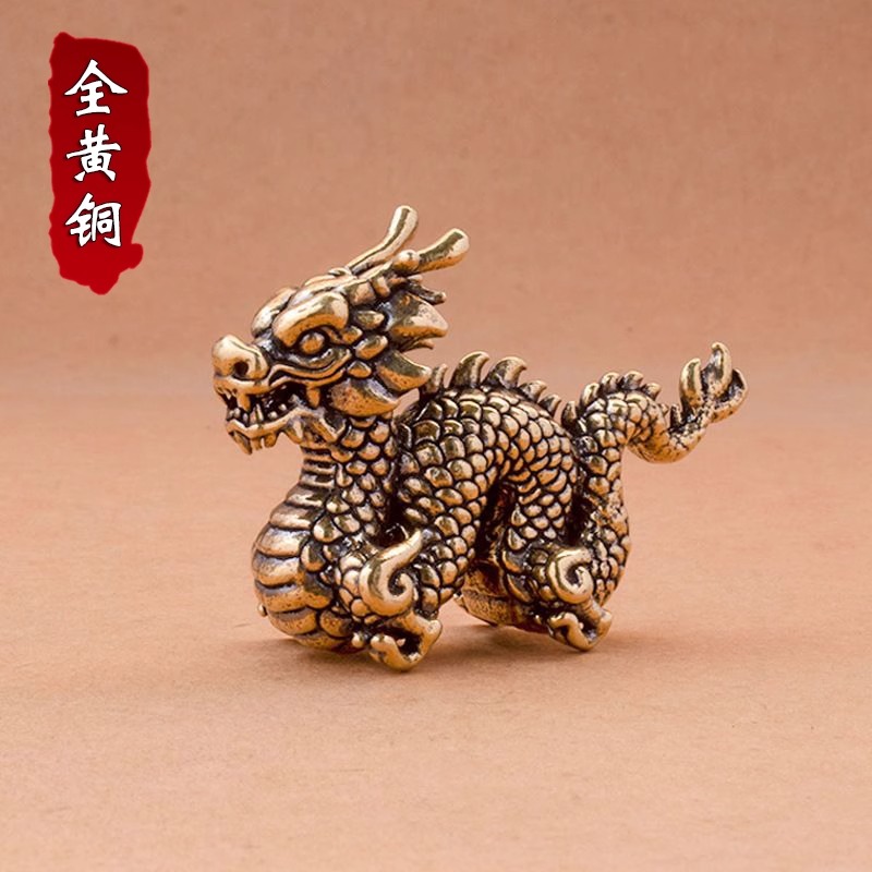 黄铜实心十二生肖龙摆件桌面装饰小铜龙腾书写压尺文房工艺品摆饰