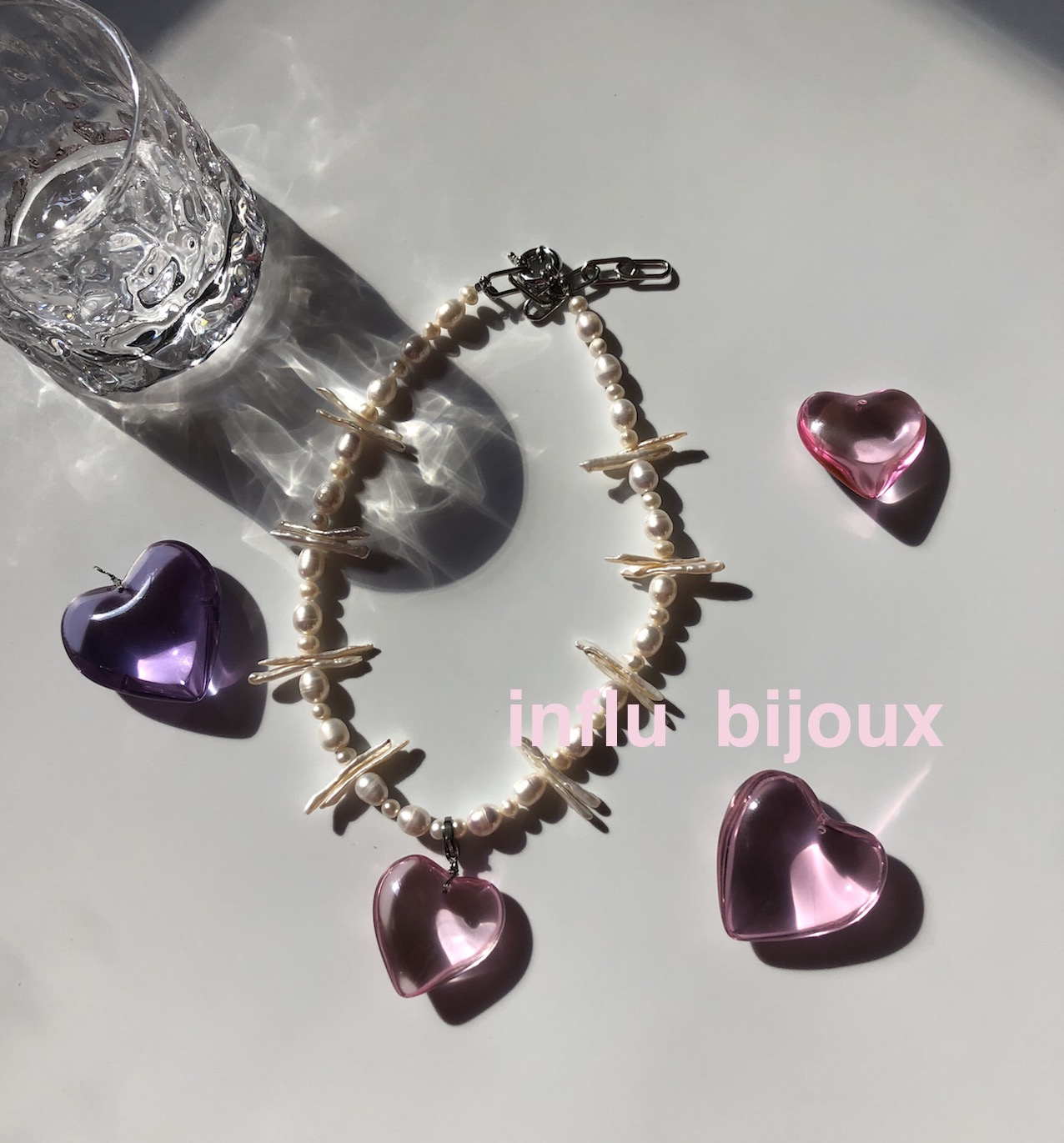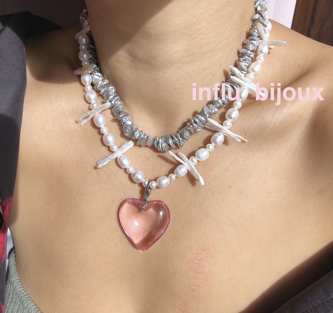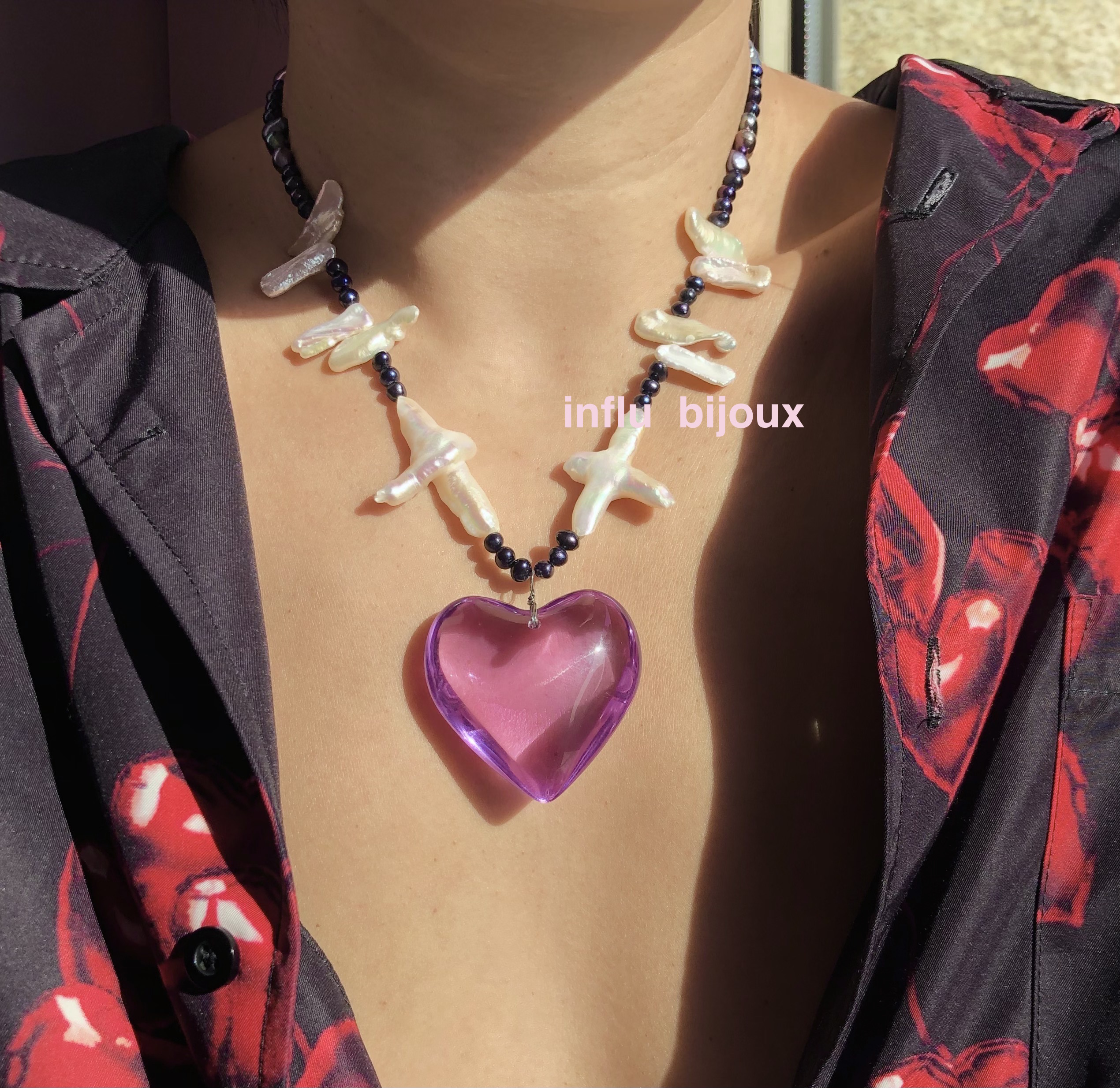 原创手作异形巴洛克珍珠甜朋克酷粉紫色琉璃y2k爱心项链赛博哥特