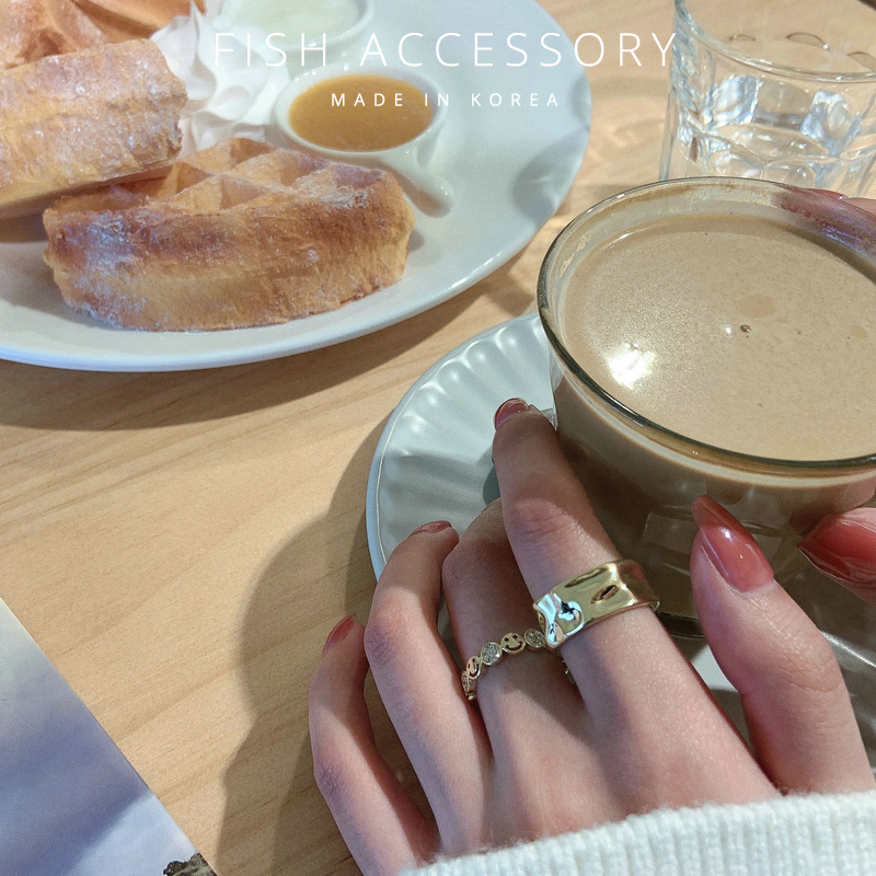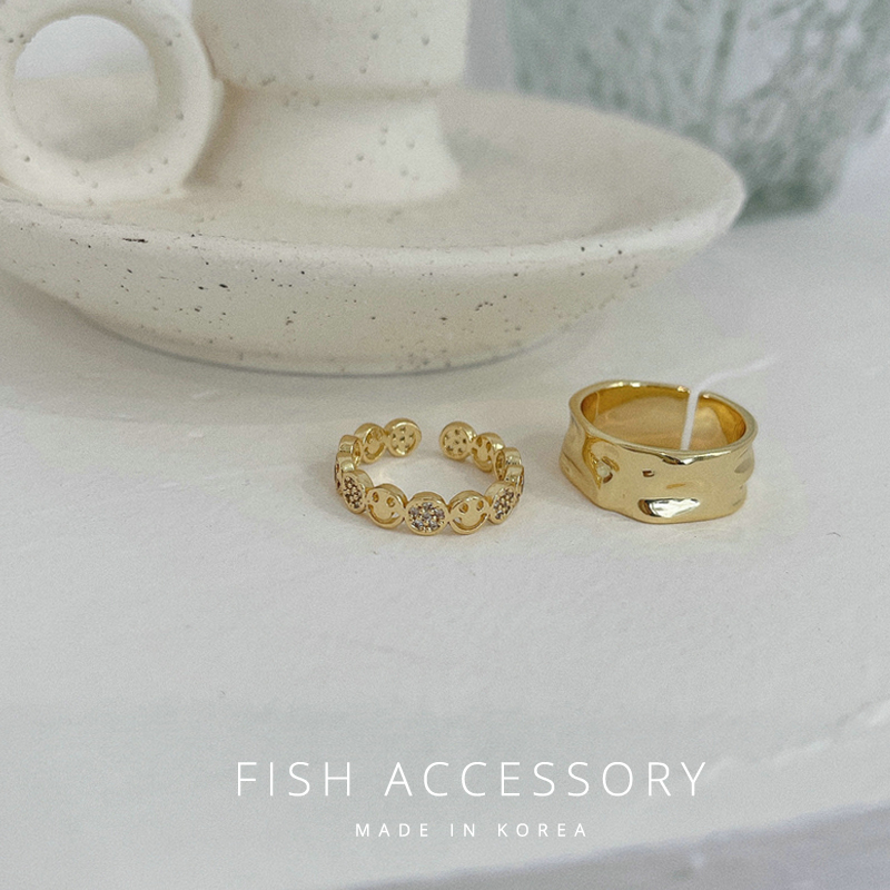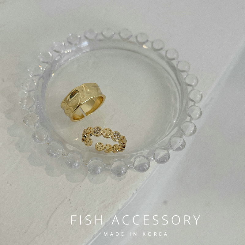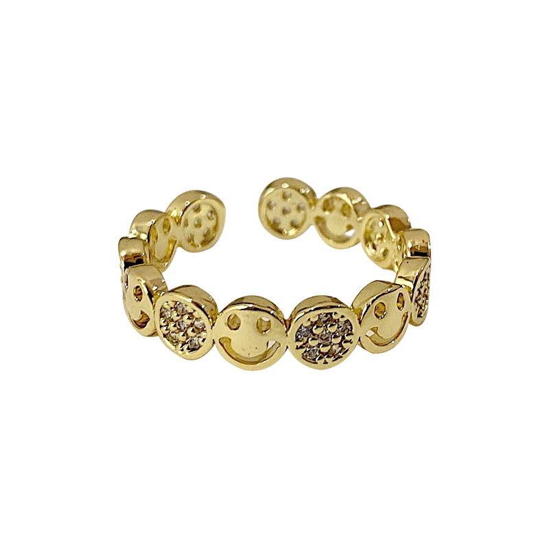 韩国小众设计款不规则金属亮面笑脸水钻食指戒女ins开口指环戒指