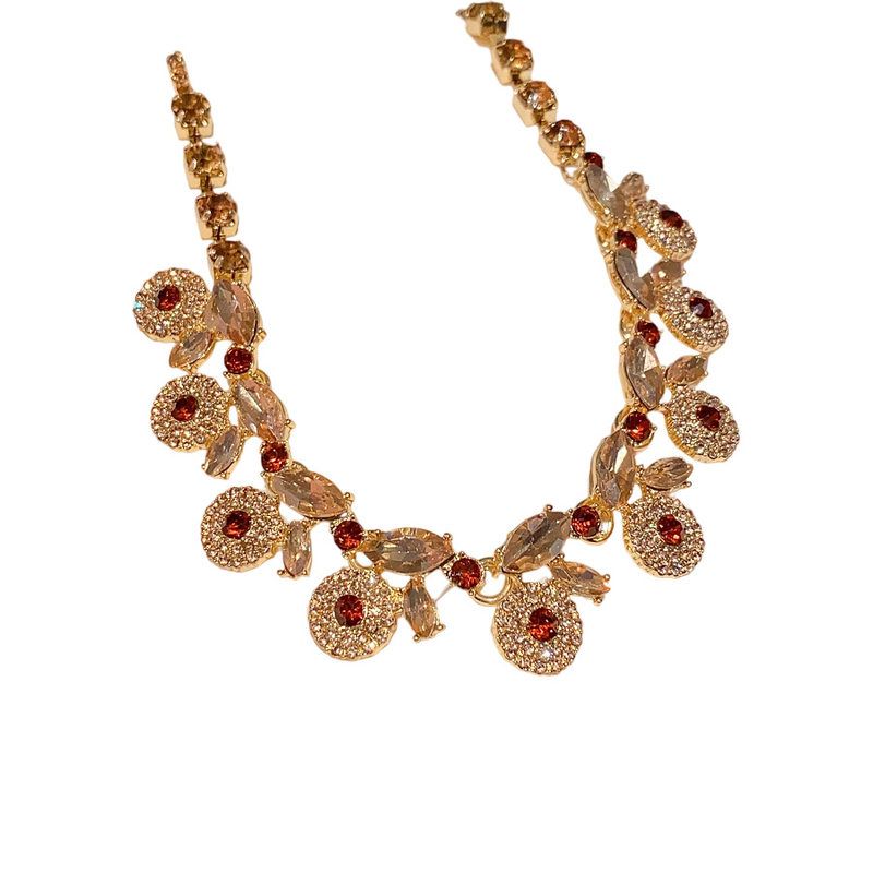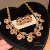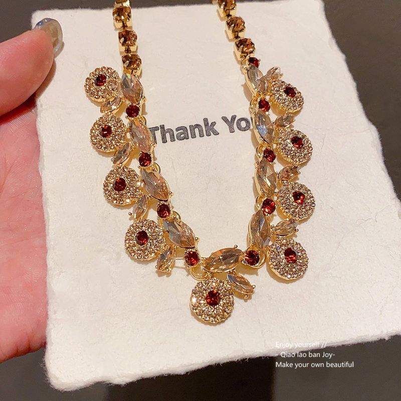 镶钻圆形花朵水滴项链复古宫廷风气质百搭锁骨链轻奢高级感项饰女