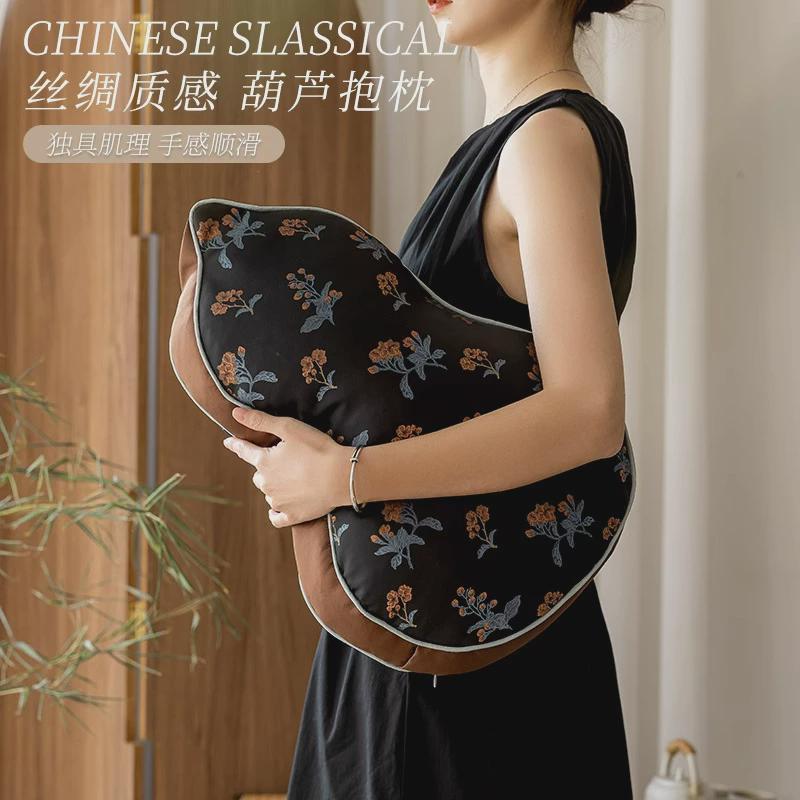 新中式葫芦抱枕法式黑色客厅沙发椅子靠背垫中国风靠垫护腰腰枕