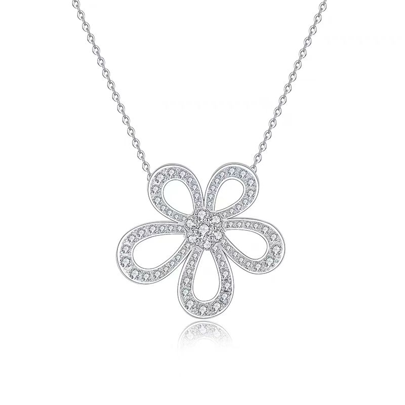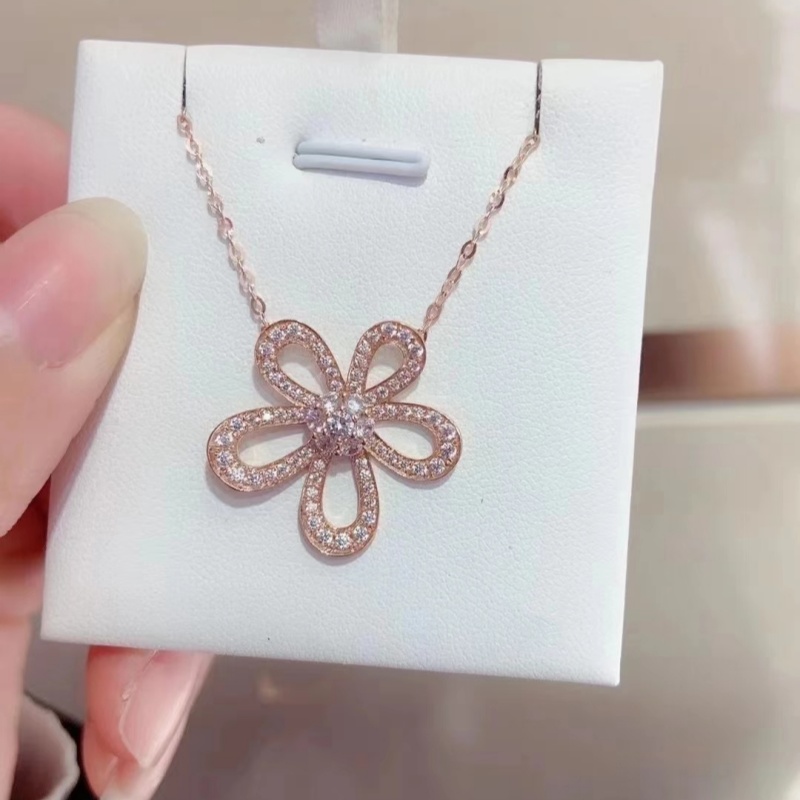 18K玫瑰金D色莫桑石宽版大花朵项链轻奢铂金满钻款锁骨链纯银温柔