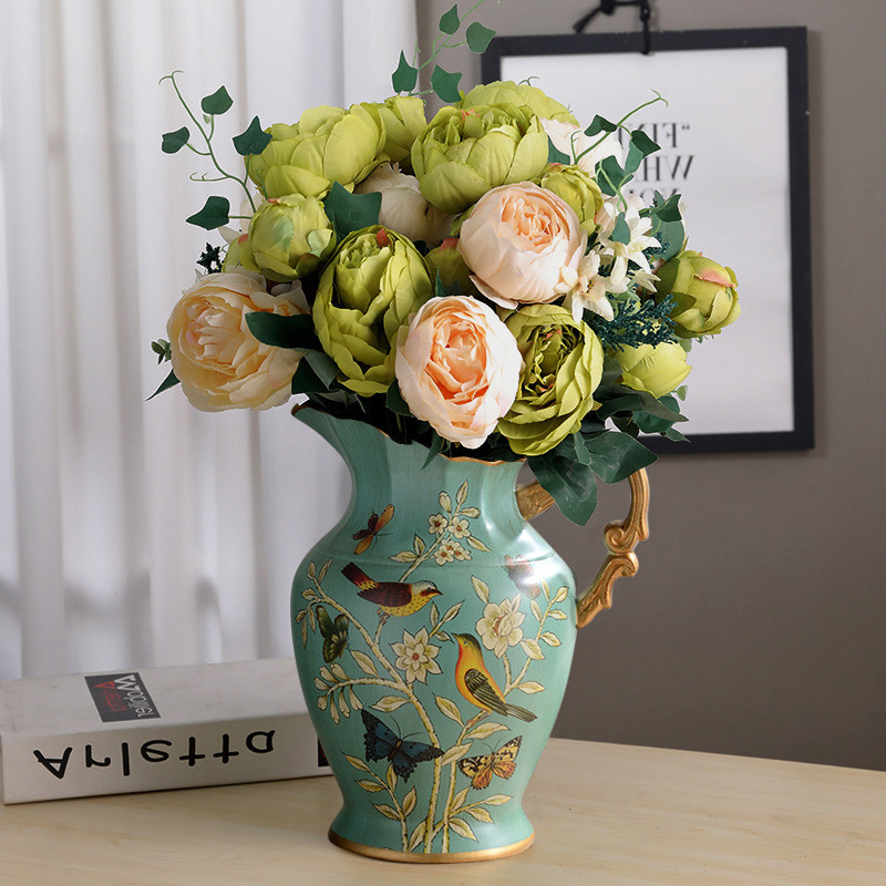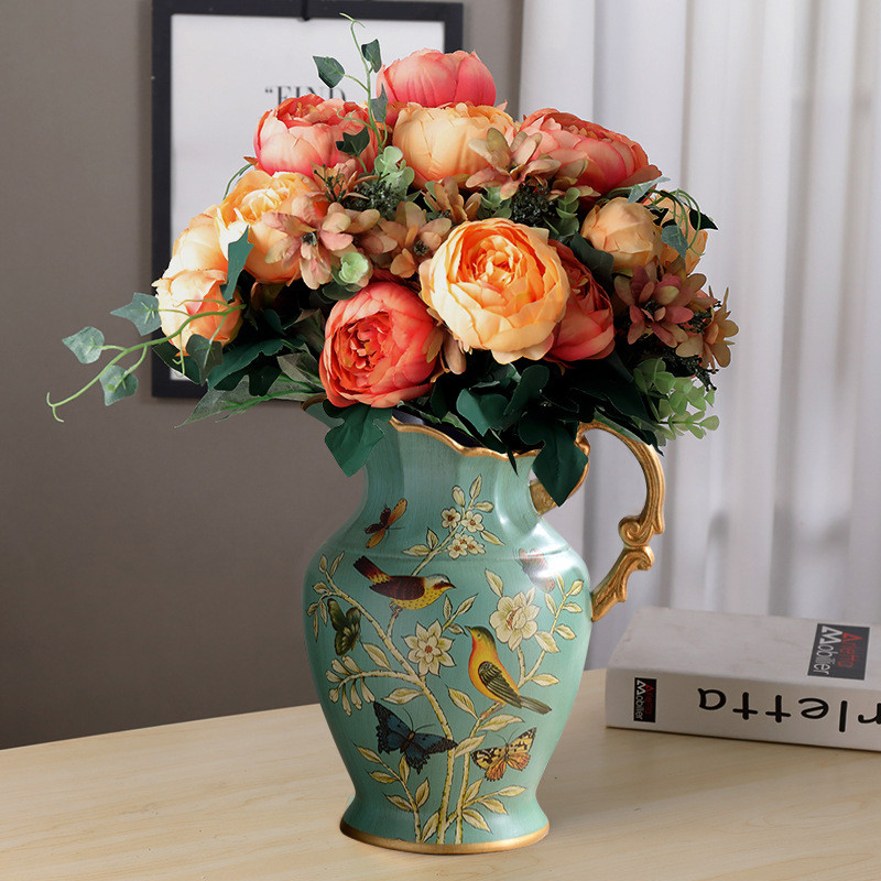 花花陶瓷花瓶复古摆件客厅插花家居装饰美式假花工艺品摆设
