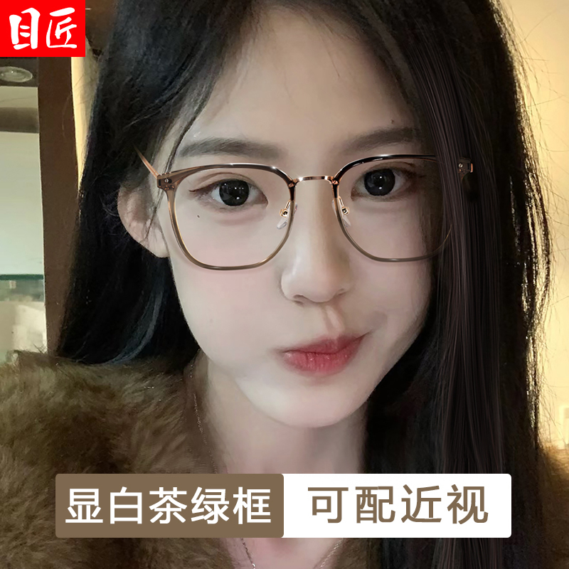 超轻橄榄绿色近视眼镜框女可配度数方圆脸显脸小素颜防蓝光大镜架