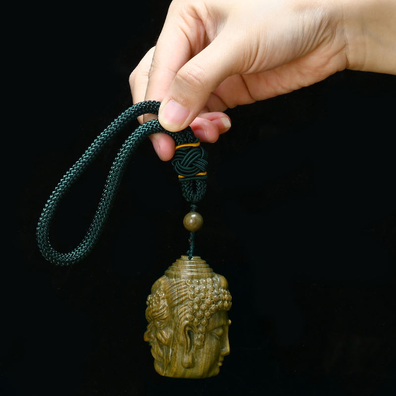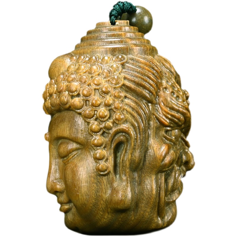 阿根廷绿檀木雕工艺品手工雕刻佛魔一念之间手把件佛头吊坠手玩