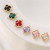 14K包金保色镶锆石四叶草双吊坠子手链项链连接件diy手工饰品配件