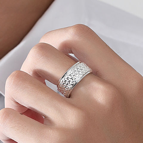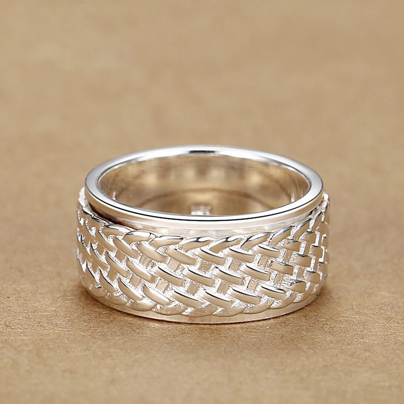 可转动99足银编织男士戒指纯银宽大码个性潮流单身食指旋转指环