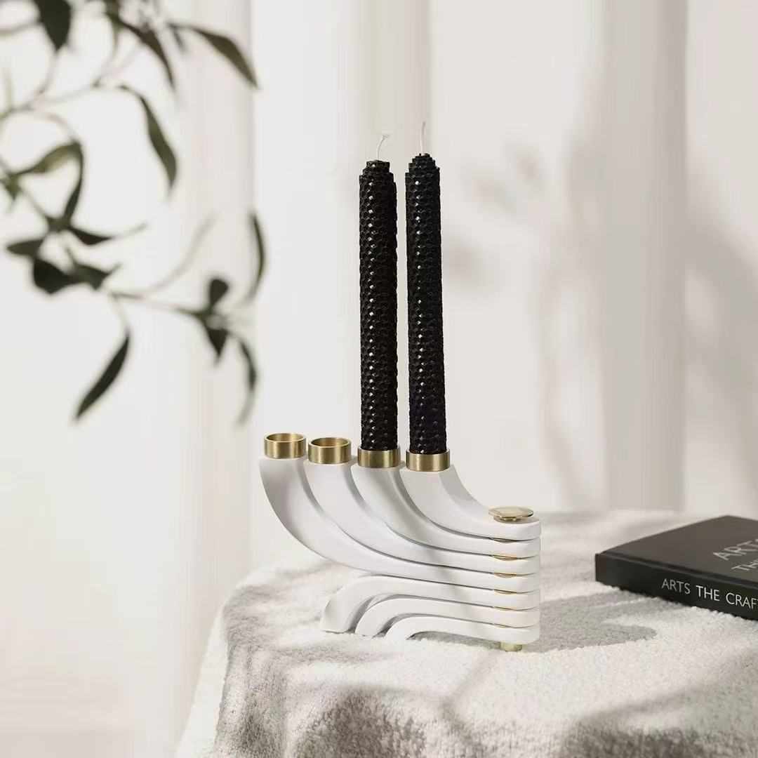 现代轻奢金属实木烛台蜡烛样板房售楼处餐桌装饰摆件酒店会所民宿