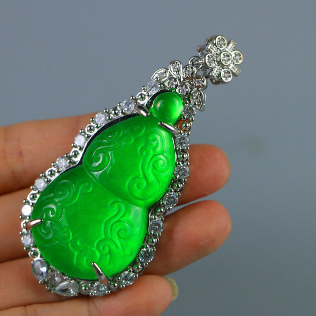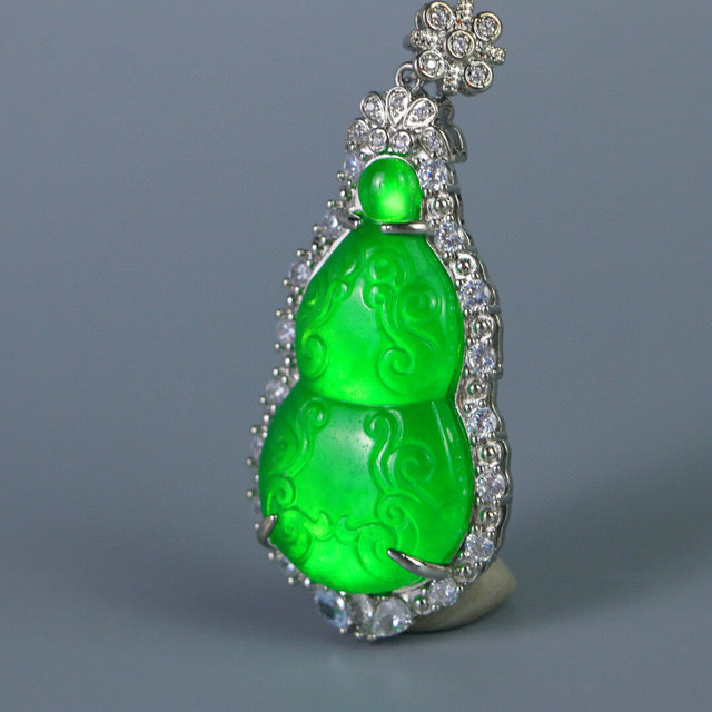 精品高冰种老翡翠葫芦玉牌吊坠挂件满绿银包玉男女款翠玉项链挂坠