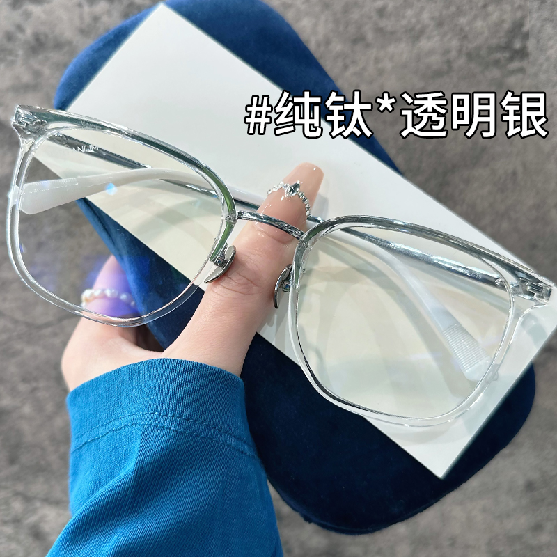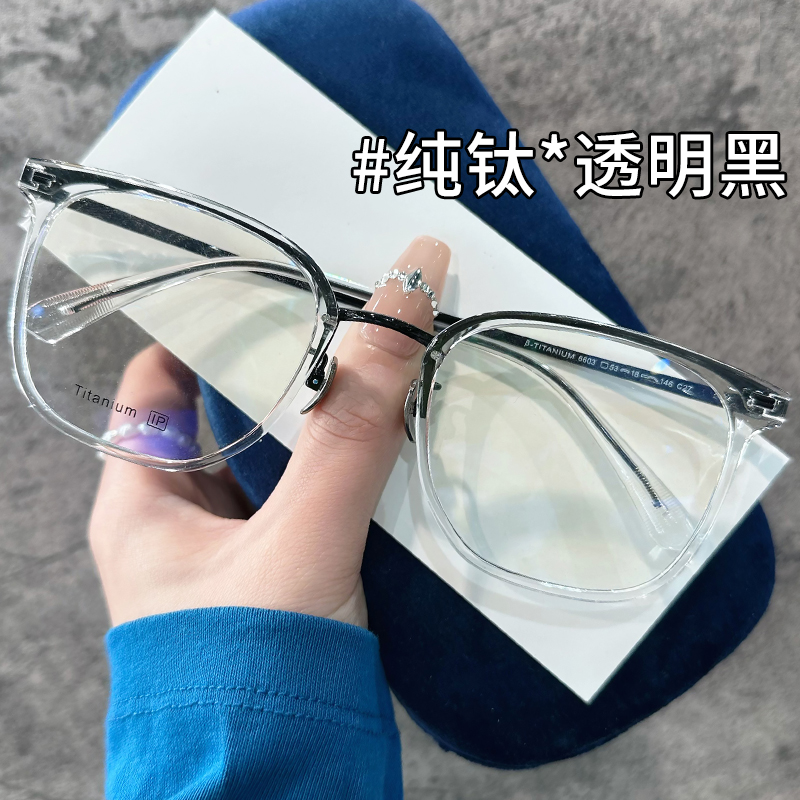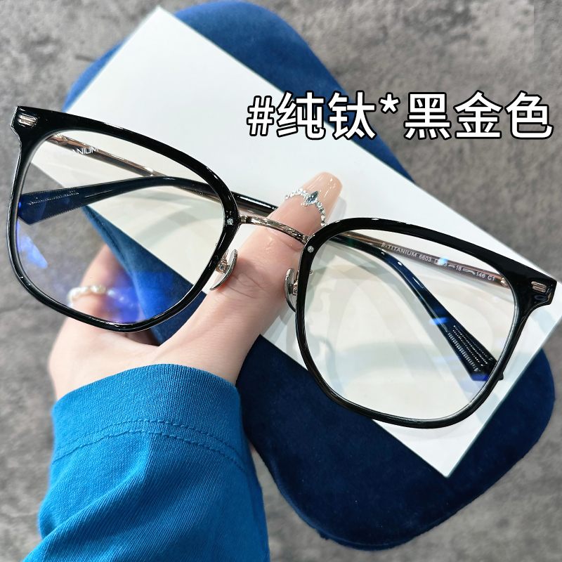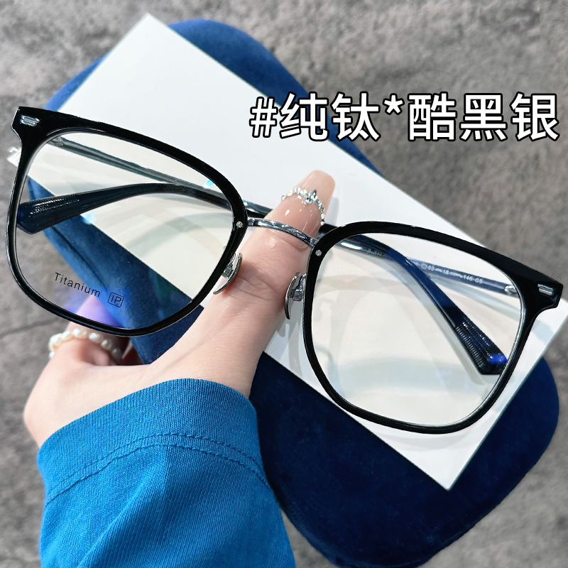 超轻纯钛眼镜近视男款可配度数变色防蓝光黑色眼镜框女高级感镜架