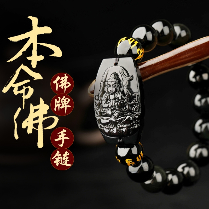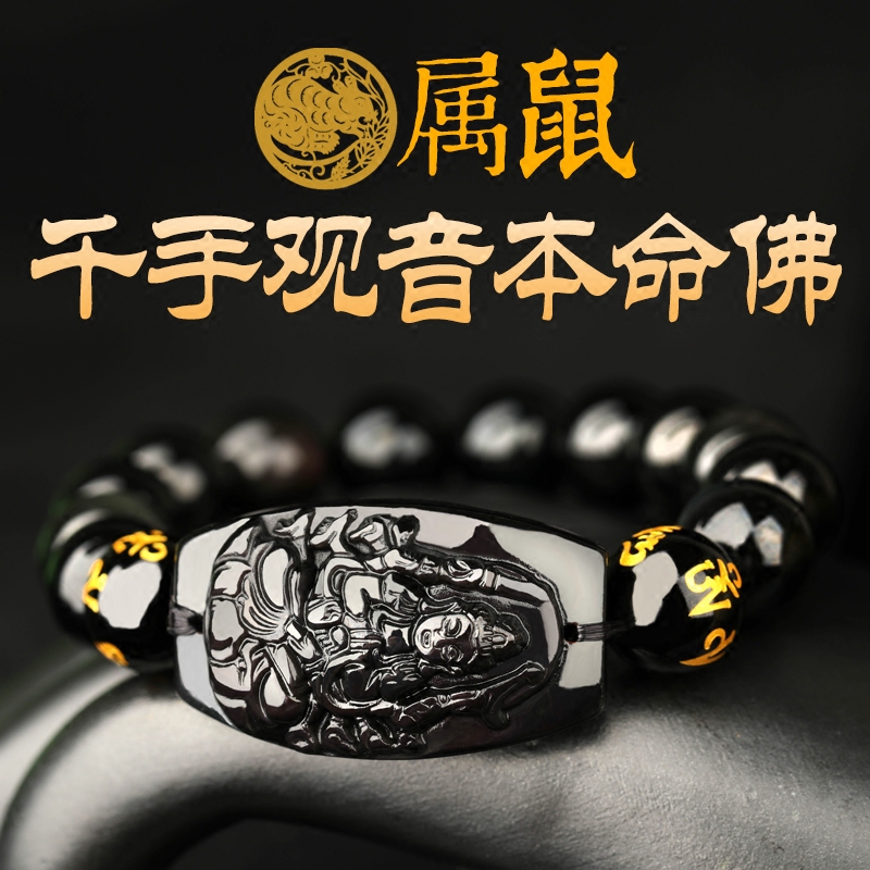 生肖属鼠千手观音菩萨本命佛手链2024龙年黑曜石手串吉祥物男女