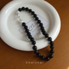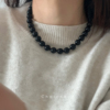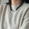 小众设计感S925银天然黑玛瑙松石串珠项链锁骨链大气复古毛衣链
