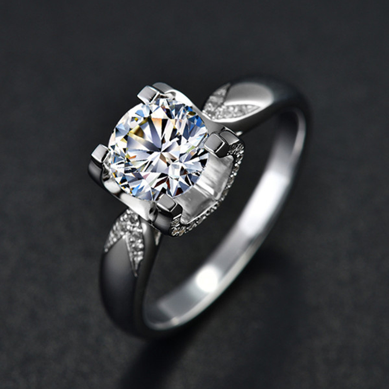 莫桑石钻戒经典燕尾牛头四爪情侣戒指s925银饰一克拉男女求婚戒指