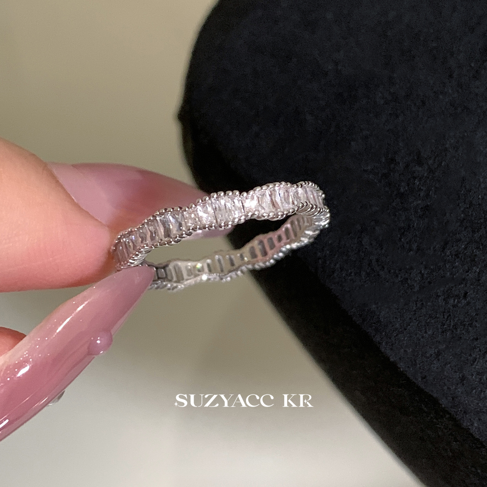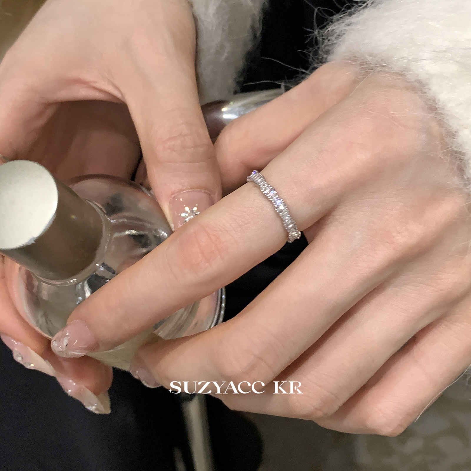 suzyacc kr轻奢排钻合成锆石戒指简约小众质感通勤食指戒百搭指环