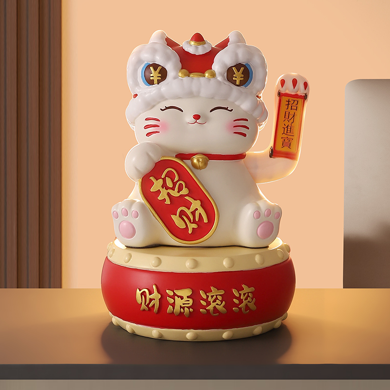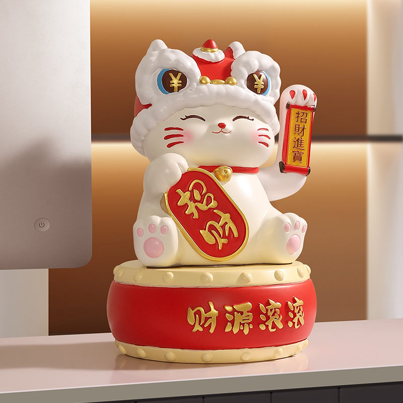 创意自动摇手醒狮招财猫摆件店铺收银台装饰公司前台招财开业礼物