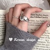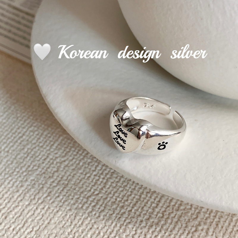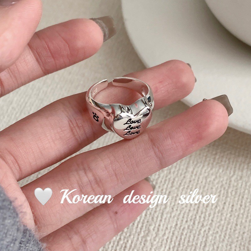 韩国南大门饰品 S925纯银宽版爱心英文戒指 开口可调节指环女