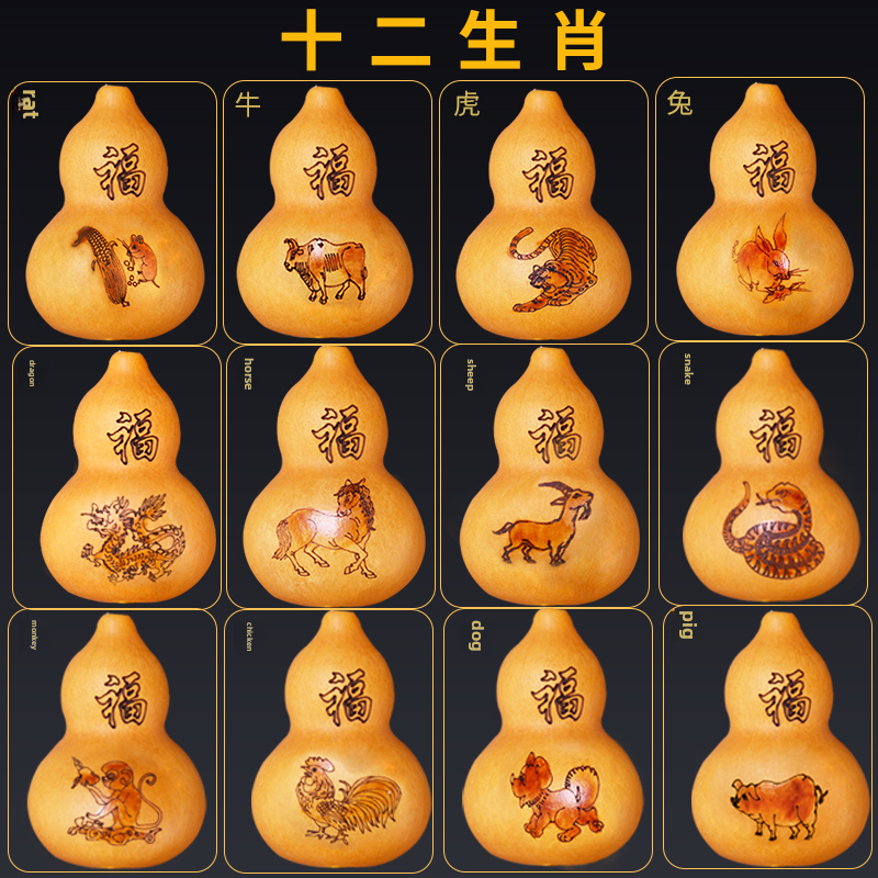 葫芦挂件天然十二生肖烙画葫芦串装饰客厅玄关门口中国结墙壁挂饰