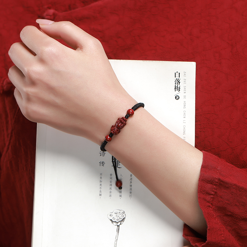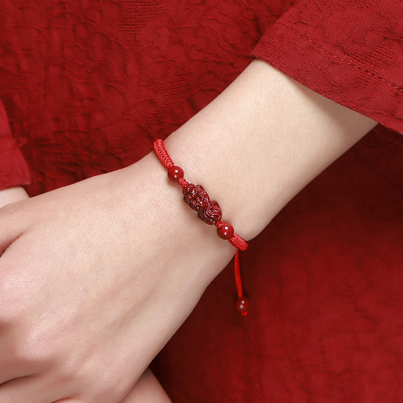 朱砂貔貅手绳本命年男女情侣款金刚结手工编织转运珠饰品刻字定制