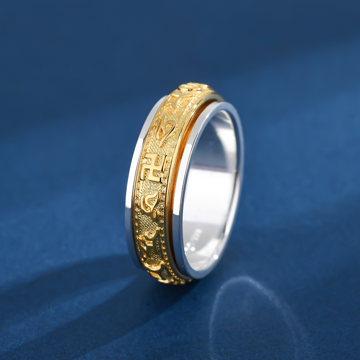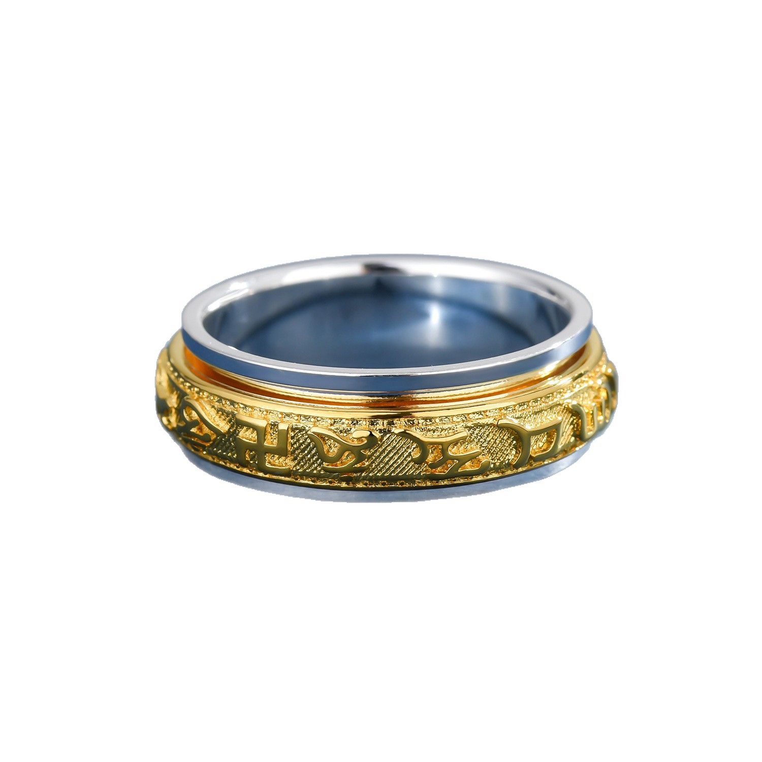 现货国风铜镀18k个性转动六字真言金色复古戒指男士礼物食指