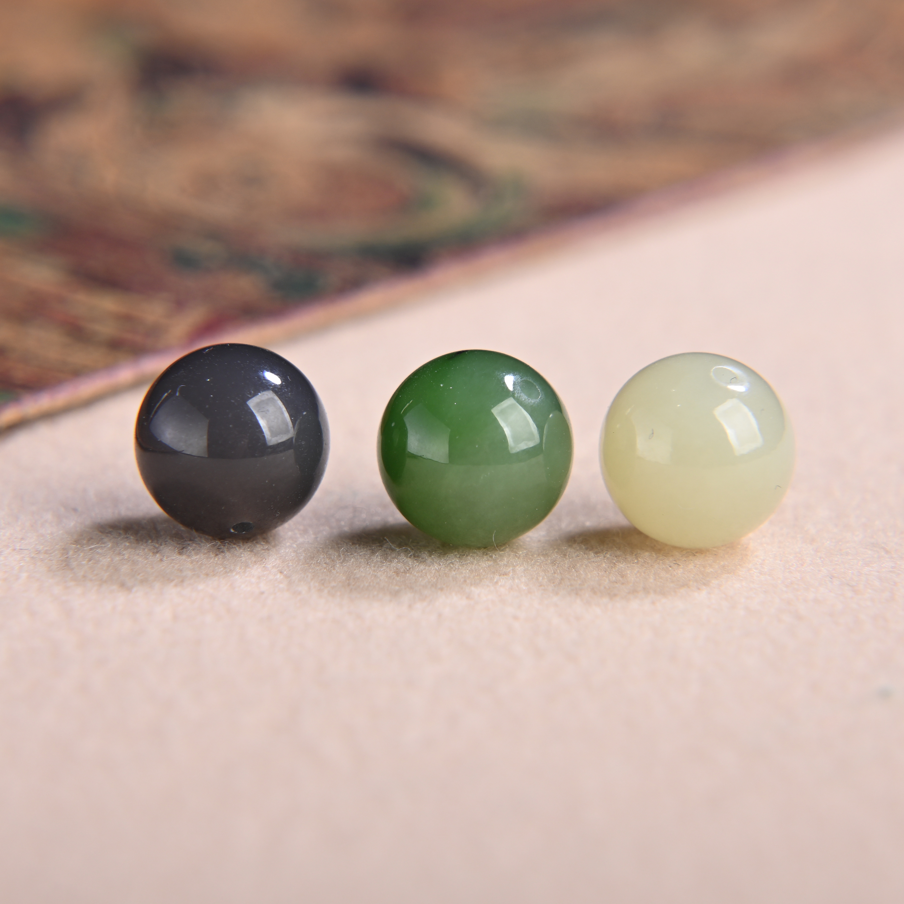 和田玉单珠散珠碧玉黄口帝王紫12mm圆珠diy手串配珠精品文玩配件