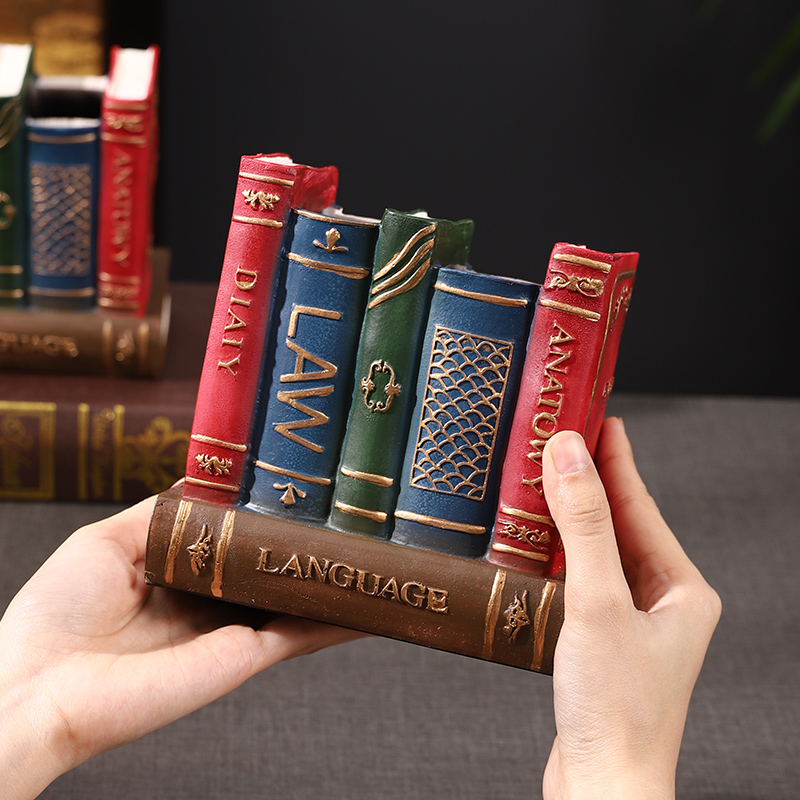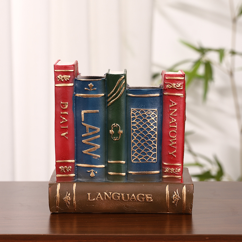 北欧个性简约创意树脂书形笔筒摆件复古艺术学生书桌桌面收纳盒