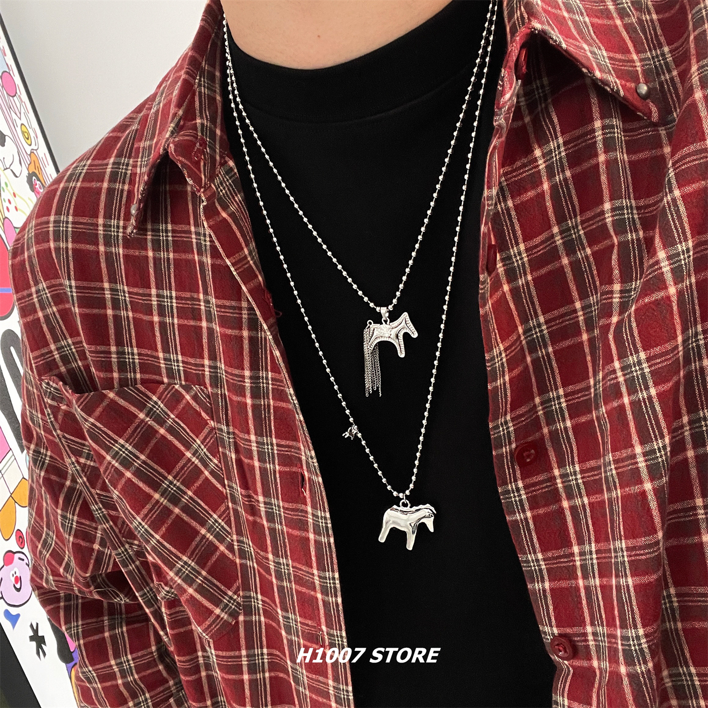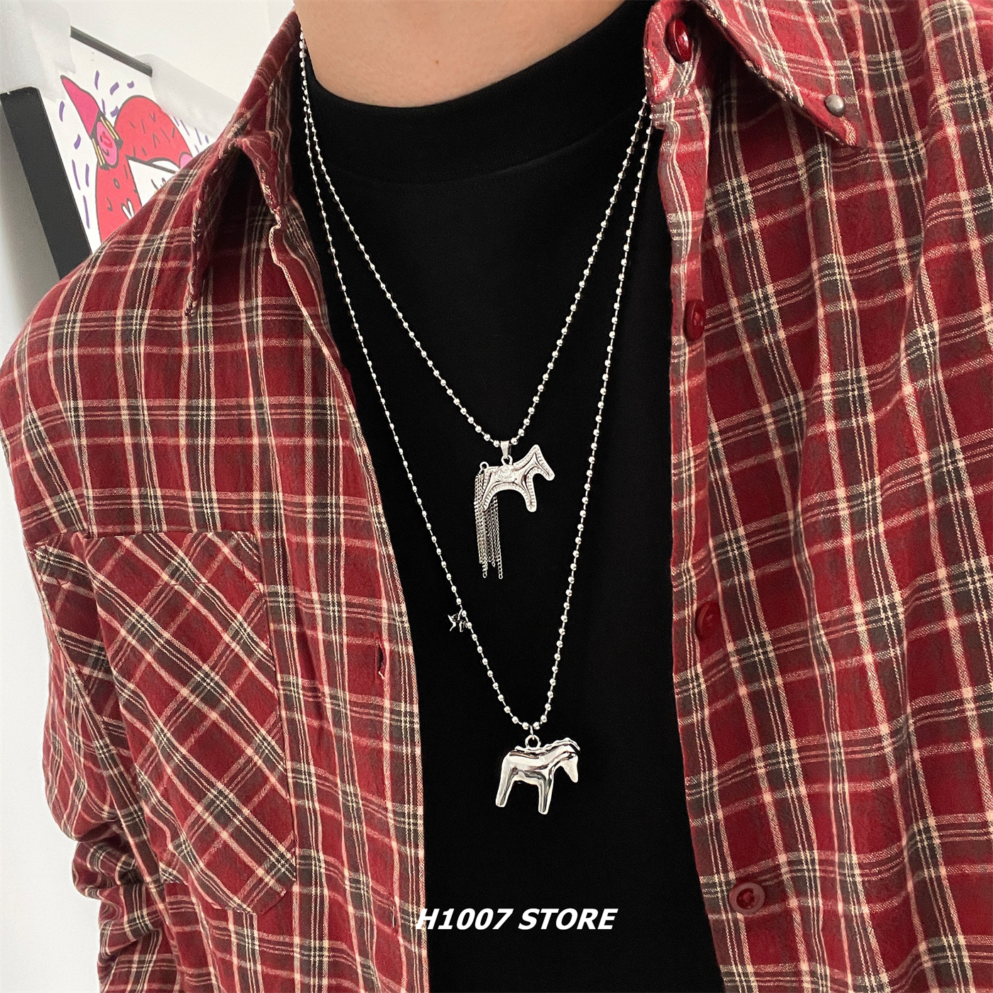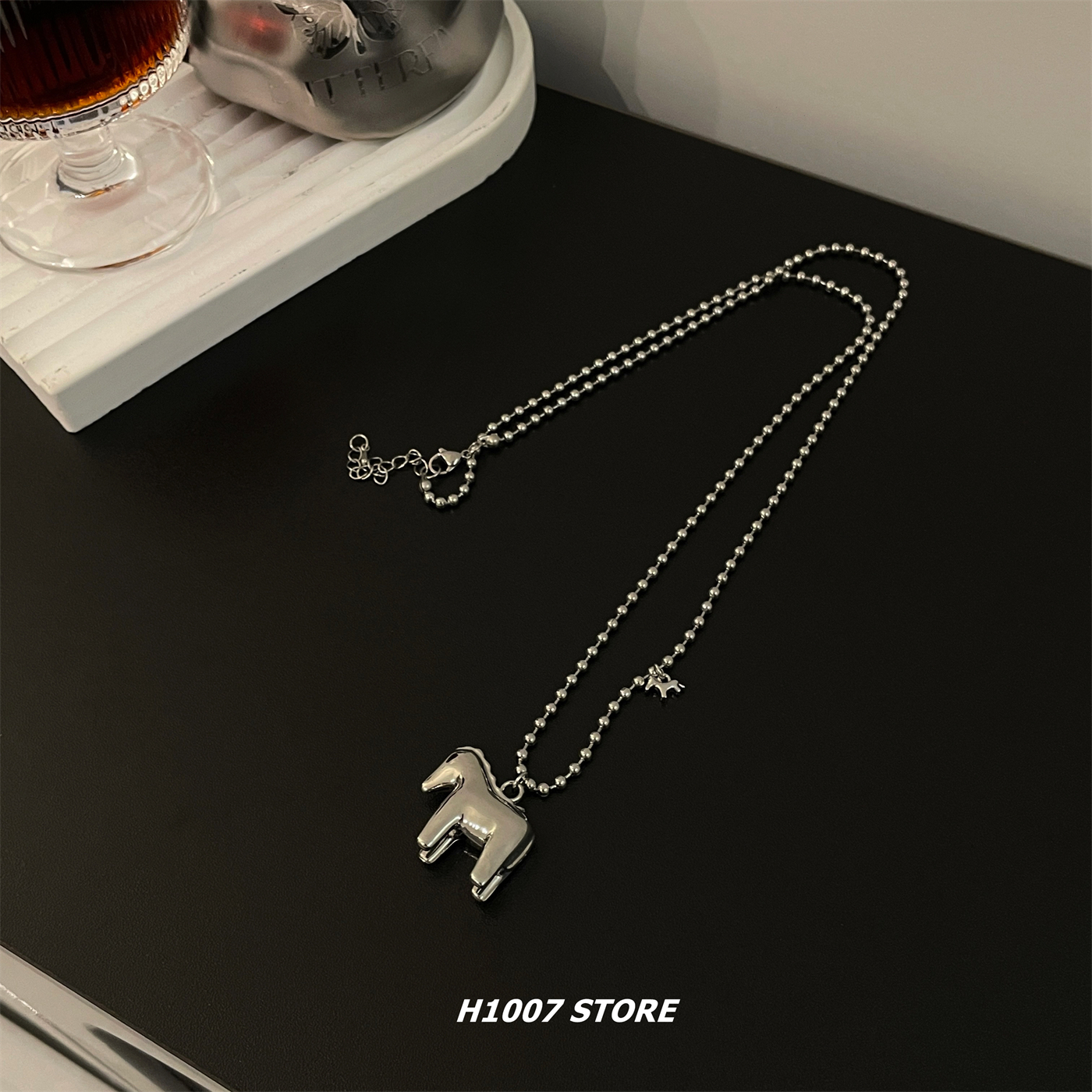 定制款立体小马小众设计男项链女冷淡风锁骨链嘻哈长款马年毛衣链