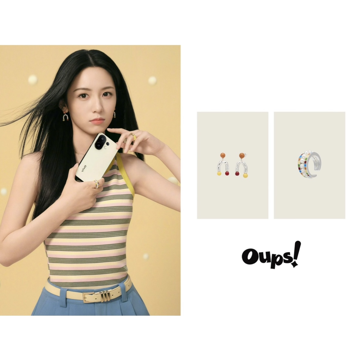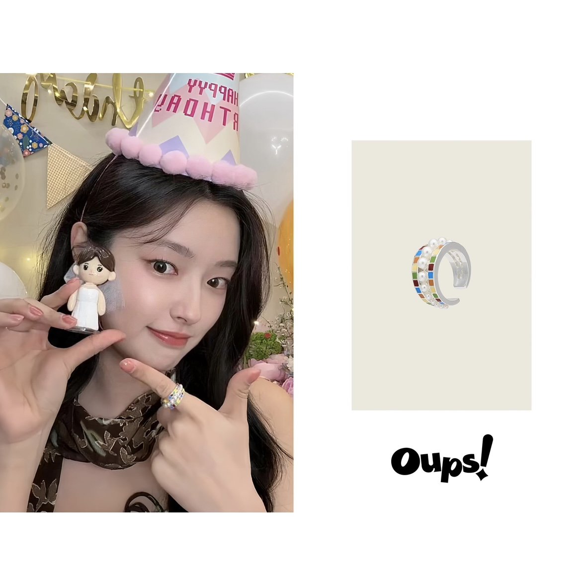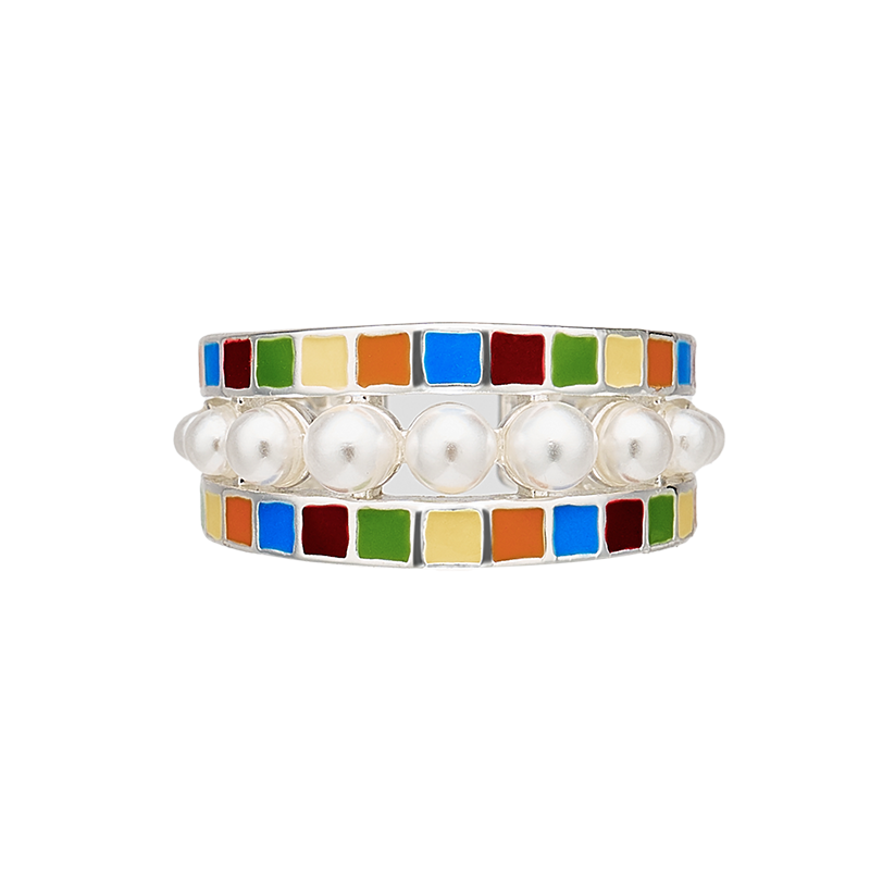 oups徐若晗周也同款邂逅马赛克戒指彩色珐琅珍珠指环小众设计原创
