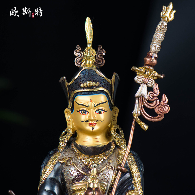 莲花生大士摆件 7寸家居饰品尼泊尔铜鎏金鎏银莲花生大师 可装赞