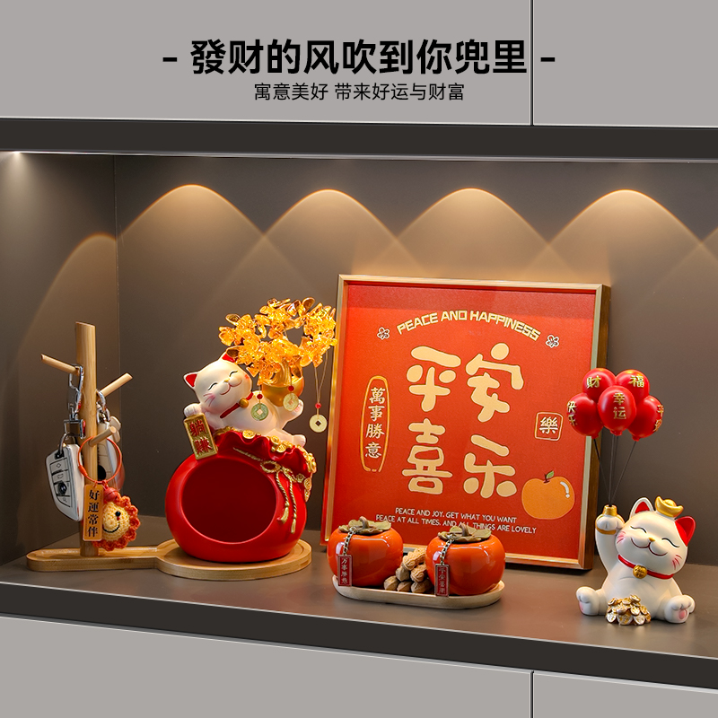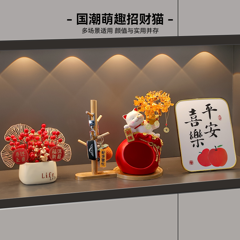 海贝海招财猫钥匙收纳玄关摆件家居客厅桌面发财树入户门口装饰品