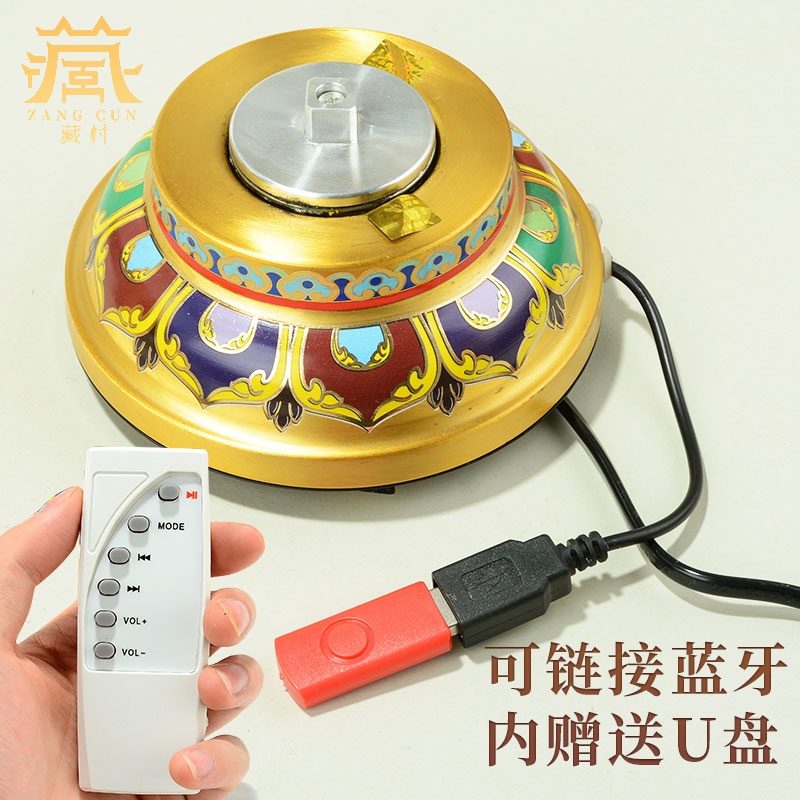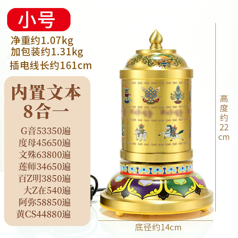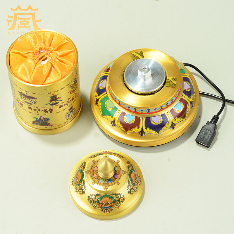 藏村曼茶罗电动转轮藏式转金筒八吉祥珐琅彩转动经筒藏经转轮摆件