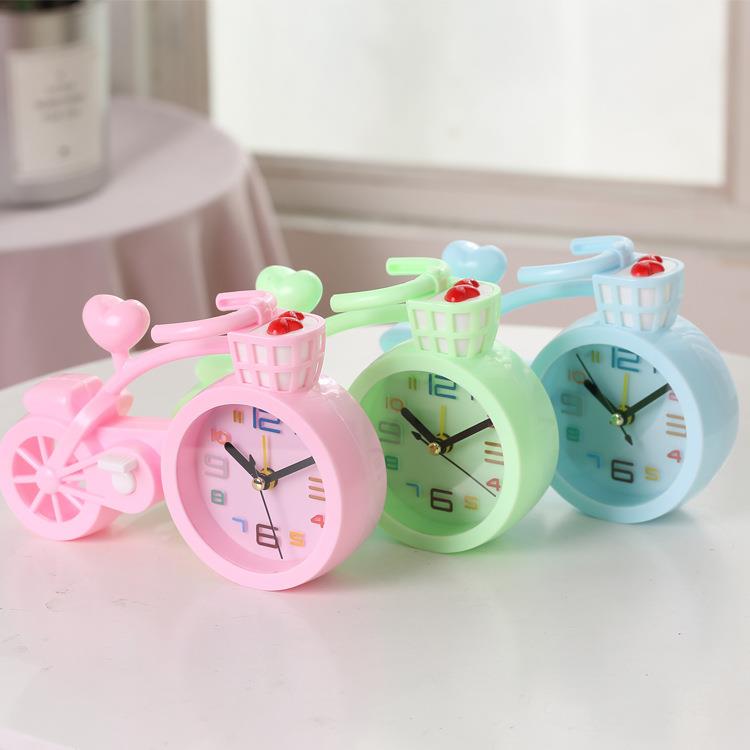 爱心自行车闹钟 创意造型动感桌面摆件 儿童闹钟 趣味学生定制