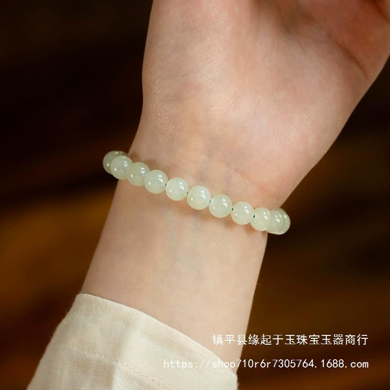 天然保真冰底晴水8mm圆珠和田玉手串女diy送闺蜜礼物玉珠手链