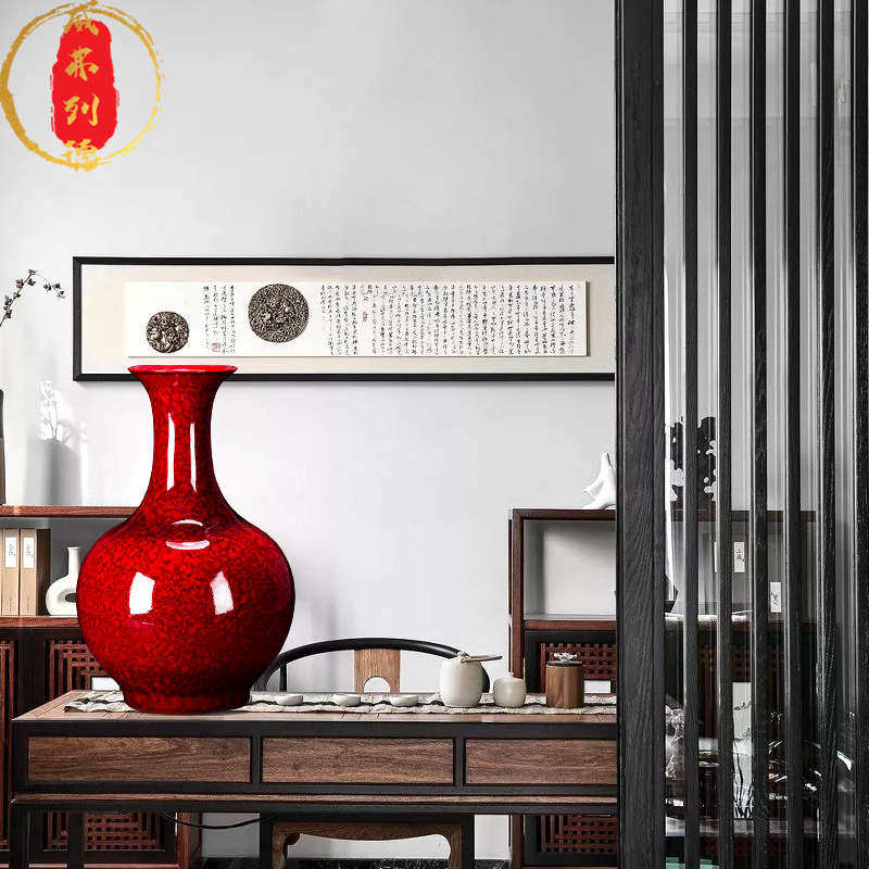 威弗列德插花新中式客厅装饰瓷器摆件中国红色赏瓶景德镇陶瓷花瓶