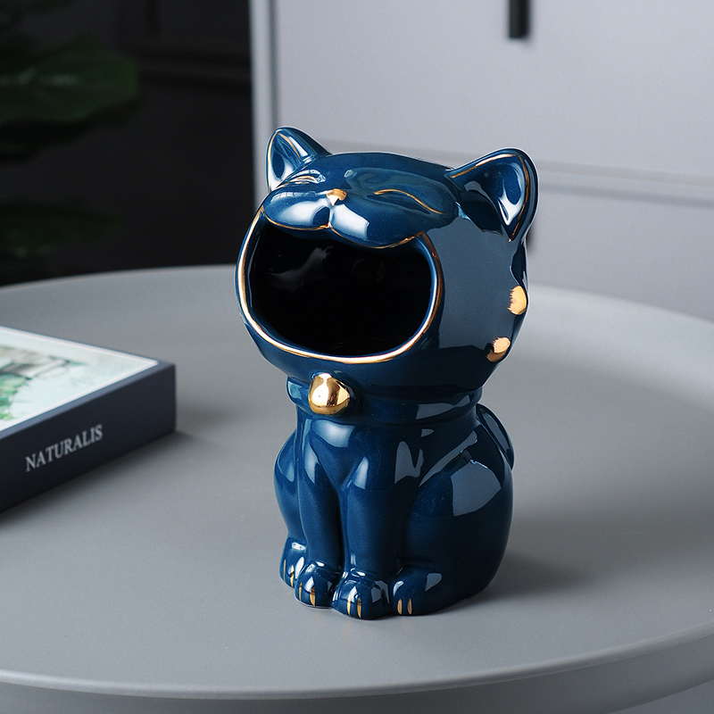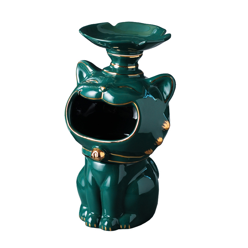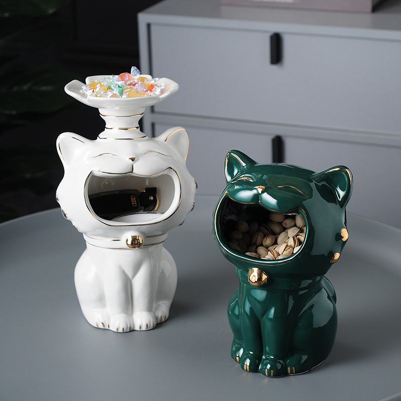 陶瓷创意家居糖果收纳盒玄关鞋柜收银台桌面进门口钥匙收纳猫摆件