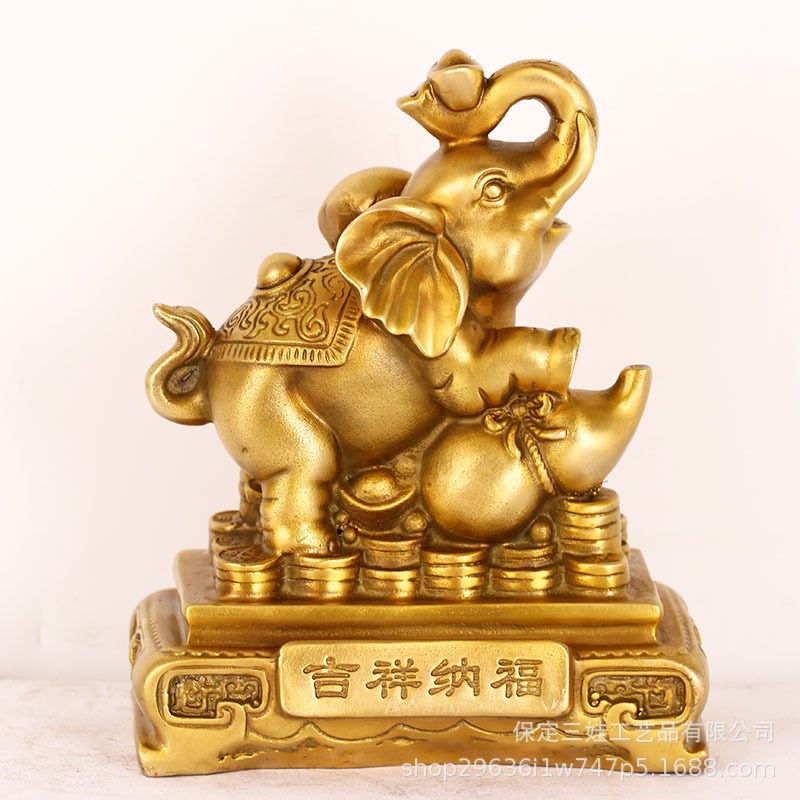 黄铜招米进宝吉像进福沙铸小像室内桌面工艺品摆件