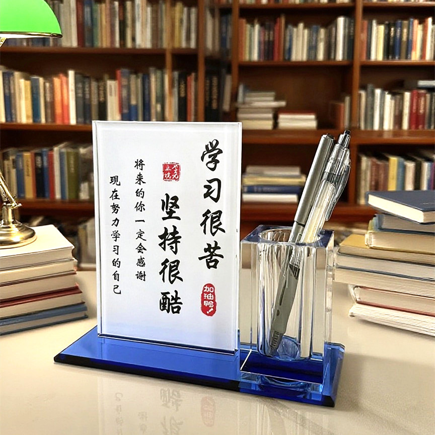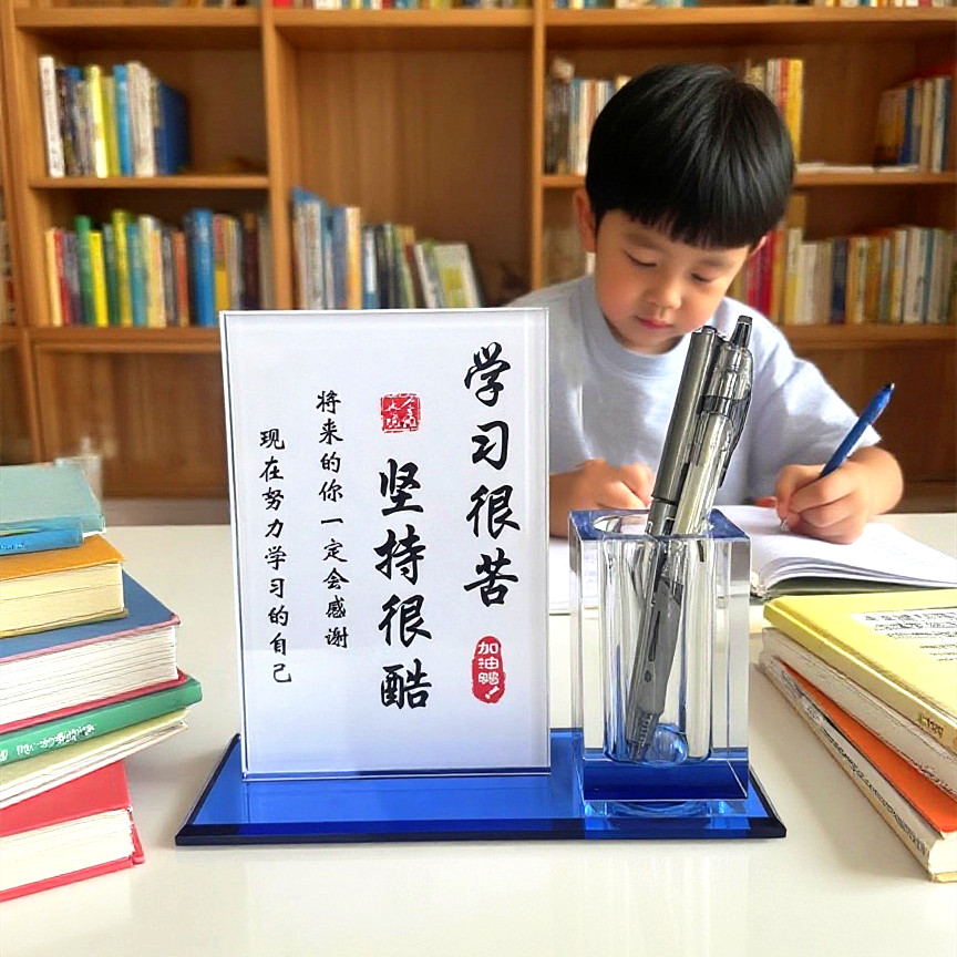 励志学生鼓励学习生日礼物笔筒收纳书桌摆件学习很苦坚持很酷摆台