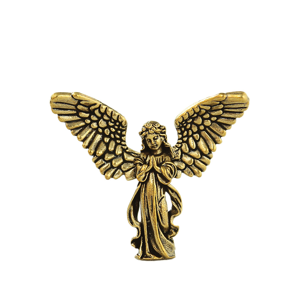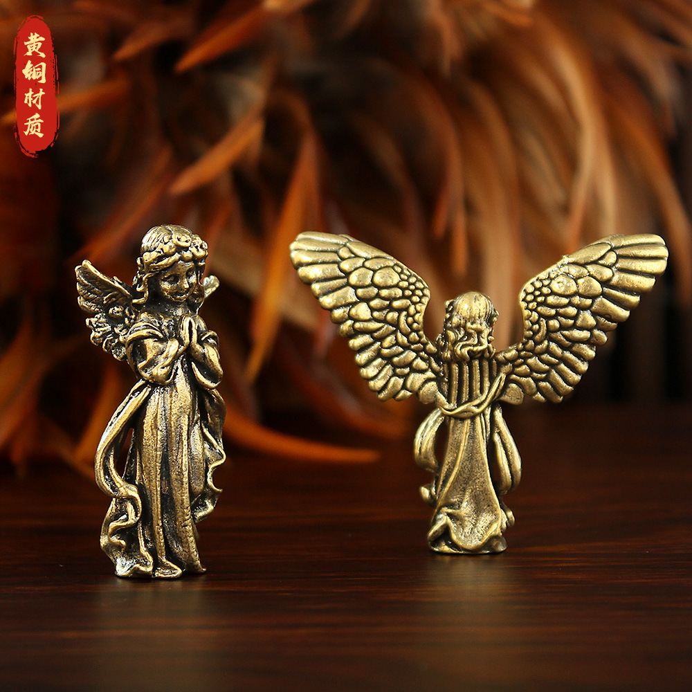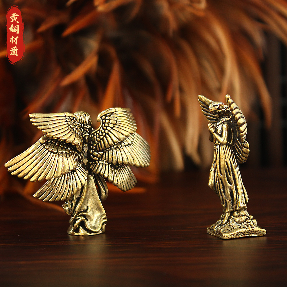 欧式复古天使摆件美式黄铜金属雕像小天使女孩桌面装饰品跨境热卖