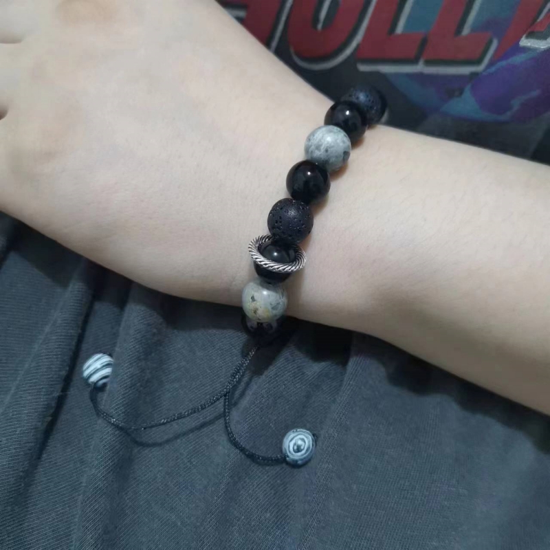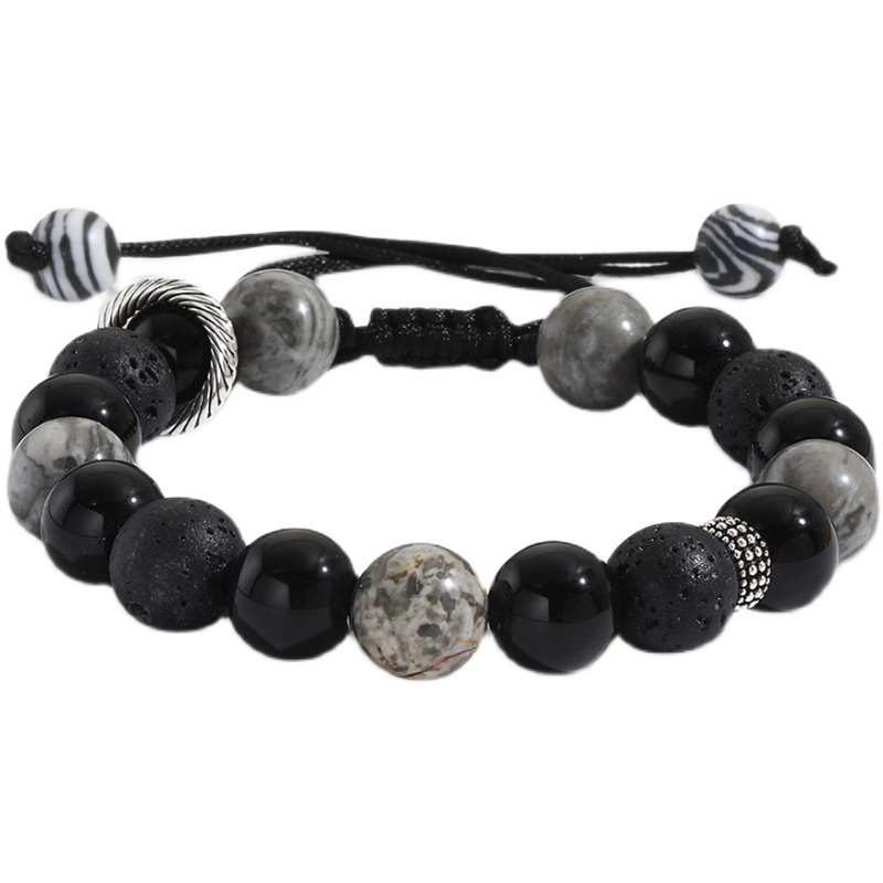 MD原创10mm火山石黑玛瑙串珠手链手串男女手工手绳可调节编织手链