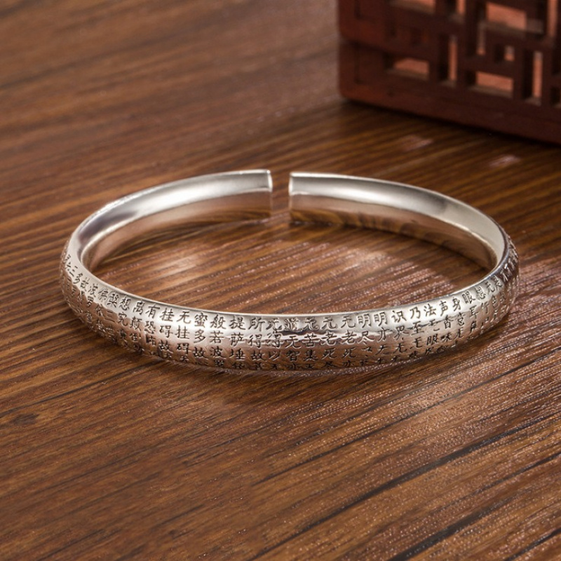 【新年转运】999足银纯银心经银手镯女实心心经纯银镯子开口送长