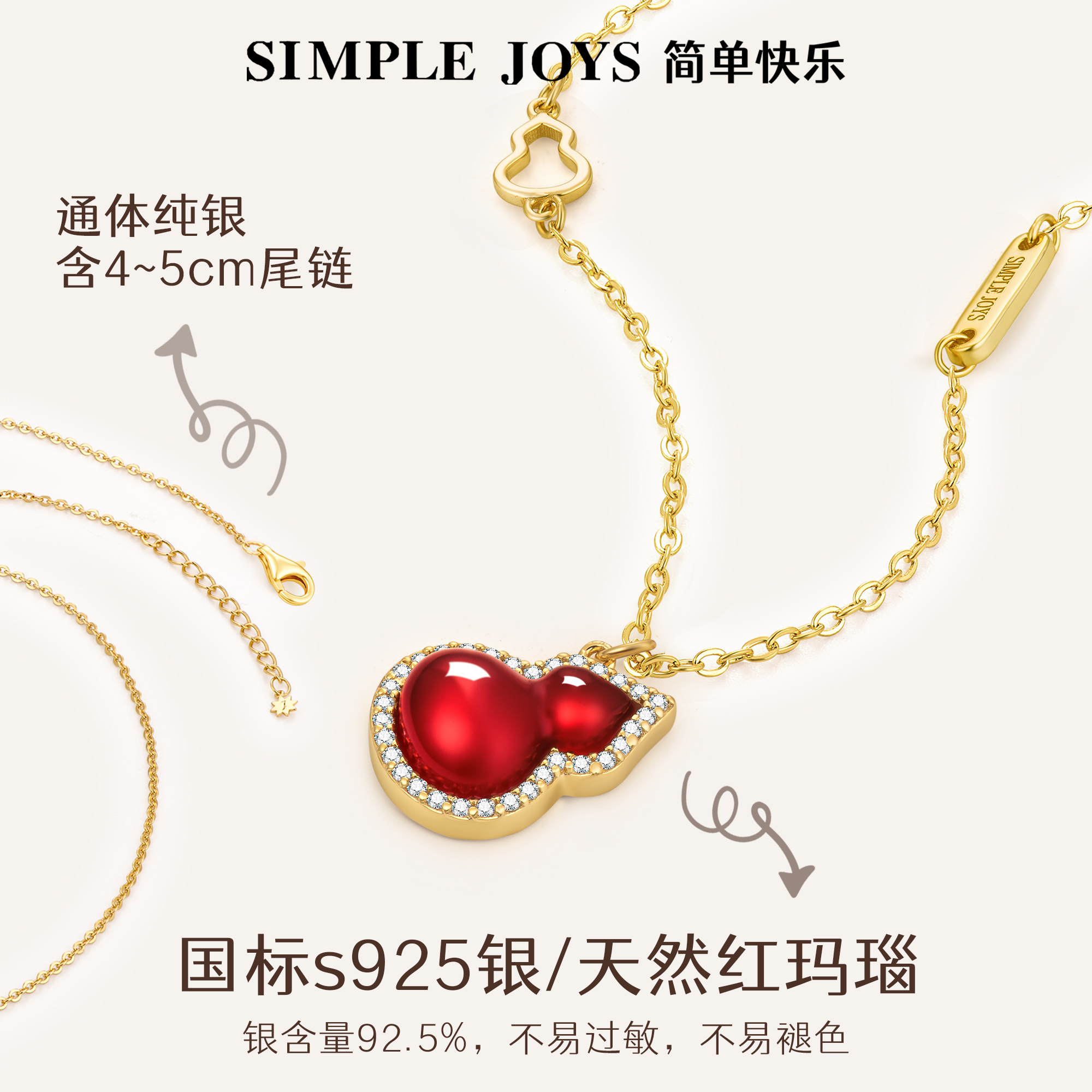SIMPLEJOYS福禄鸿运葫芦项链女红玛瑙转运s925纯银妈妈生日礼物