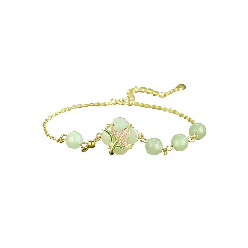 原创玉兰花四叶草和田玉手链女纯银夏季高级感复古国风新中式手串