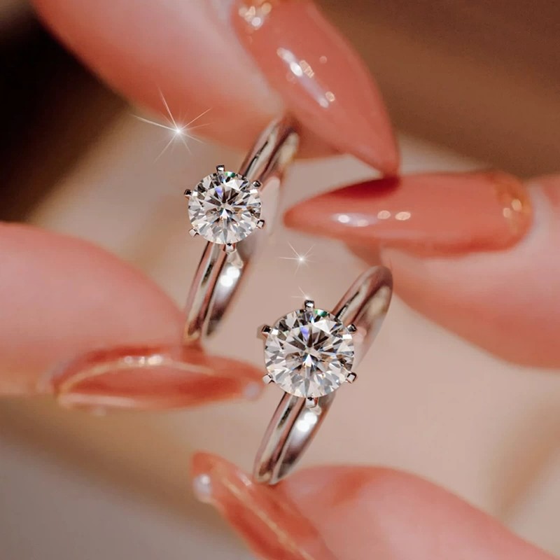 DR『经典六爪』莫桑石钻戒纯银戒指求婚结婚七夕情人节礼物送女友