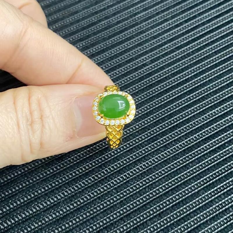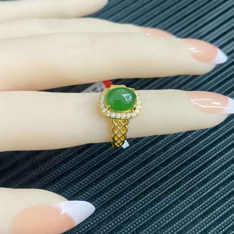黄金和田玉戒指999足金镶嵌工艺女款指环和田碧玉送妈妈礼物
