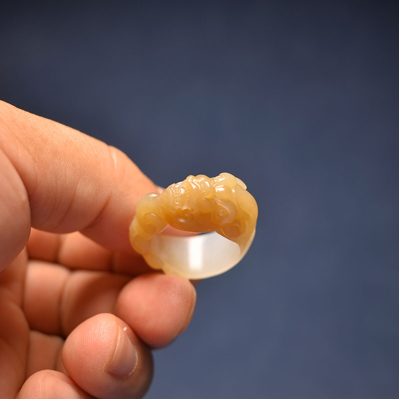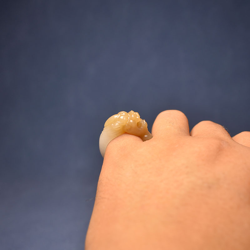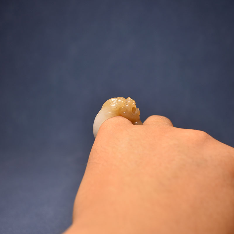 致敬708090内径18新疆和田玉且末金糖白玉貔貅男女戒指环吊坠19码