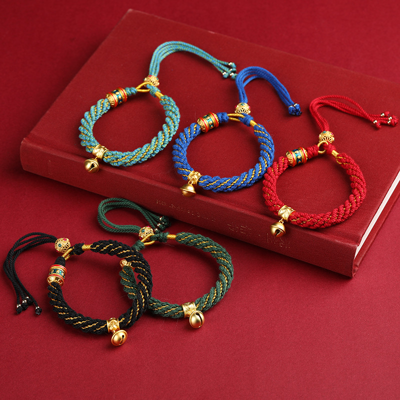 精编藏式手绳六字真言手工编织红绳手搓棉线编织手链男女唐卡