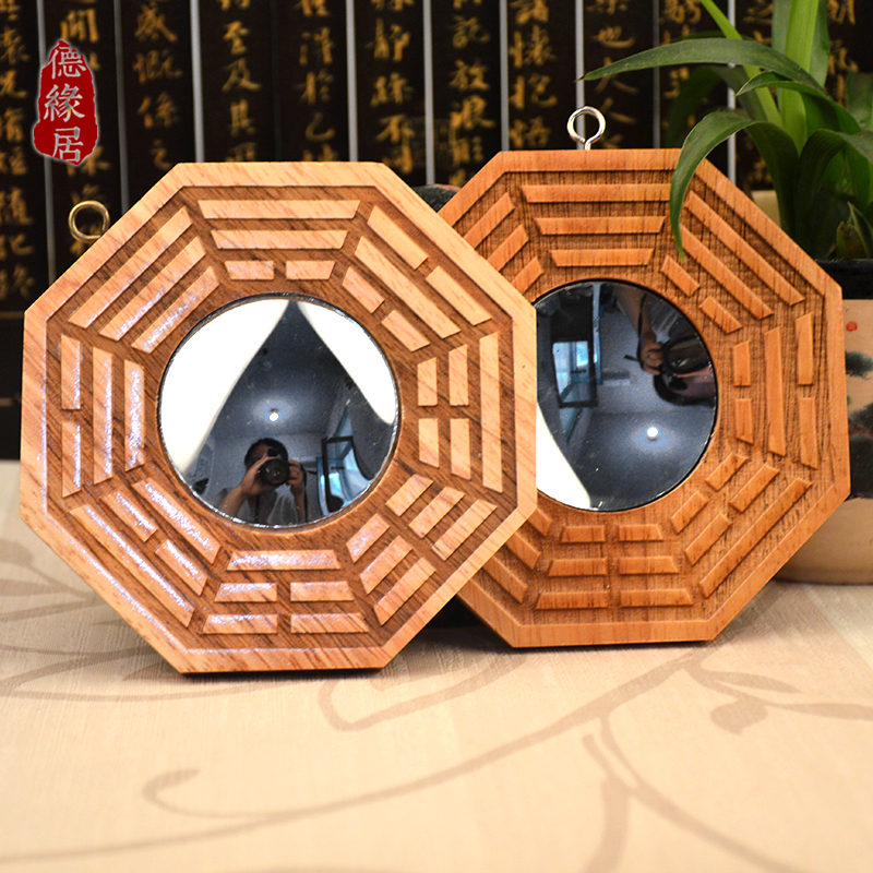 桃木八卦镜挂件八卦凸镜凹面镜镜玻璃镜面镜子工艺品摆件