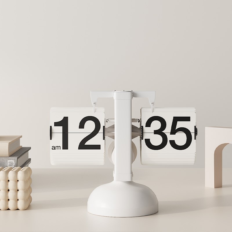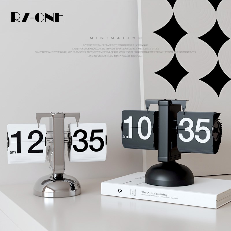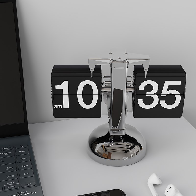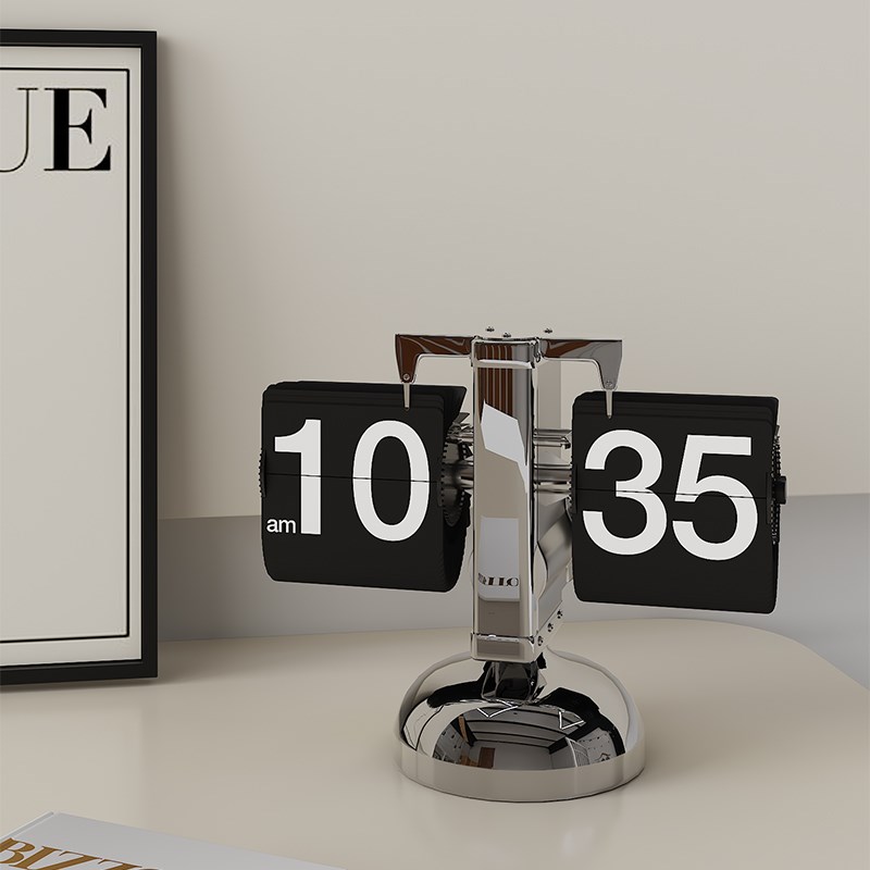 高档不锈钢自动翻页机械时钟日历钟数字座钟桌面轻奢酒柜装饰摆件