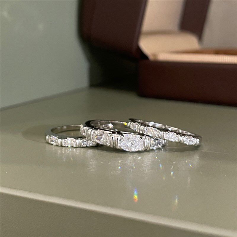 轻奢覆古间钻叠戴排钻三合一戒指女925银镀金三戴U款时尚百搭通勤