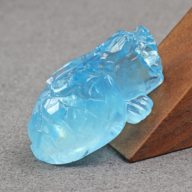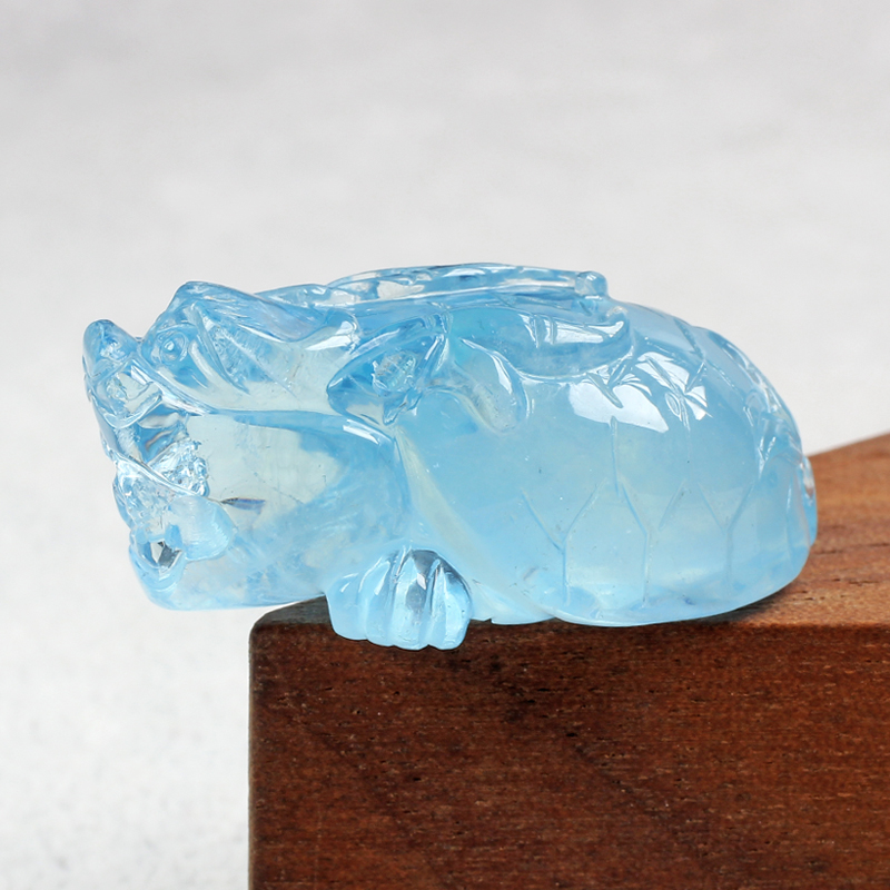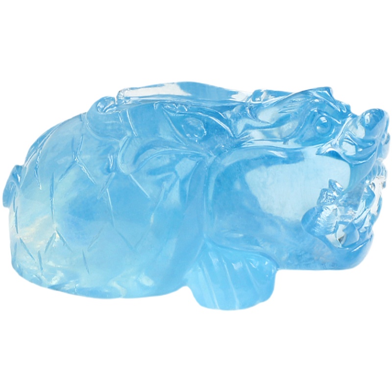 深蓝通透款原石雕刻件冰种龙龟吊坠海蓝宝龙头龟挂件蓝色水晶项链